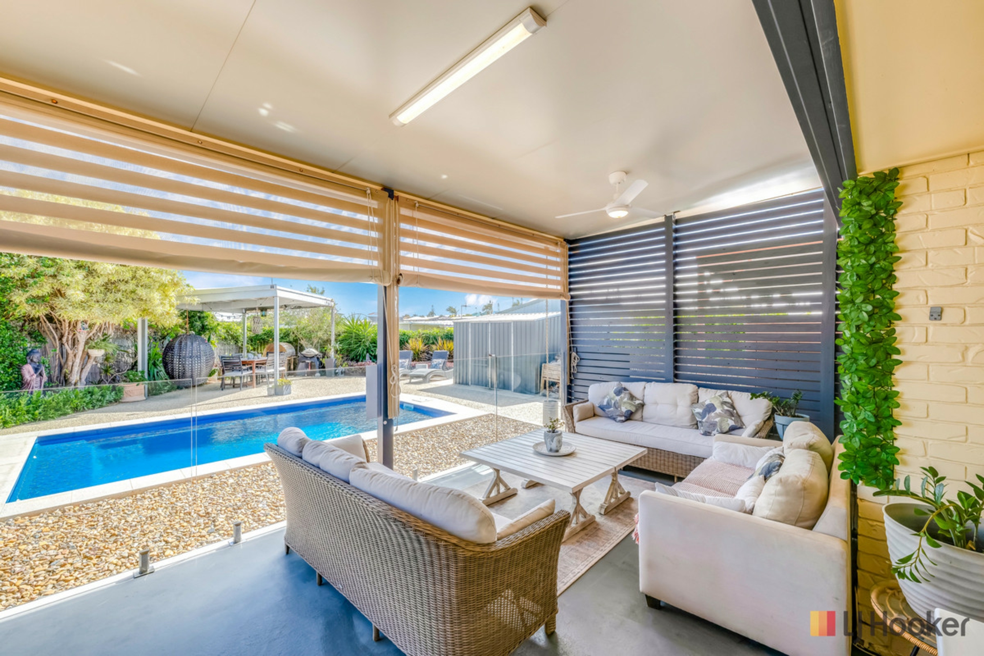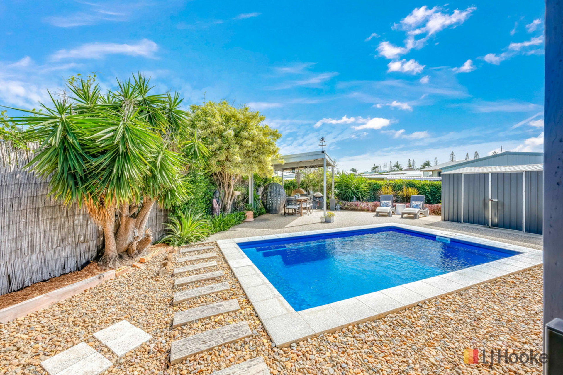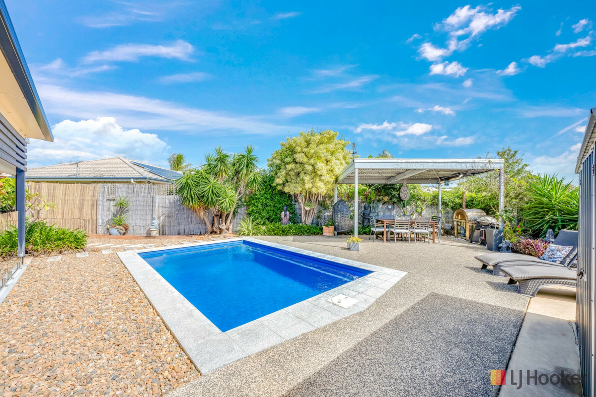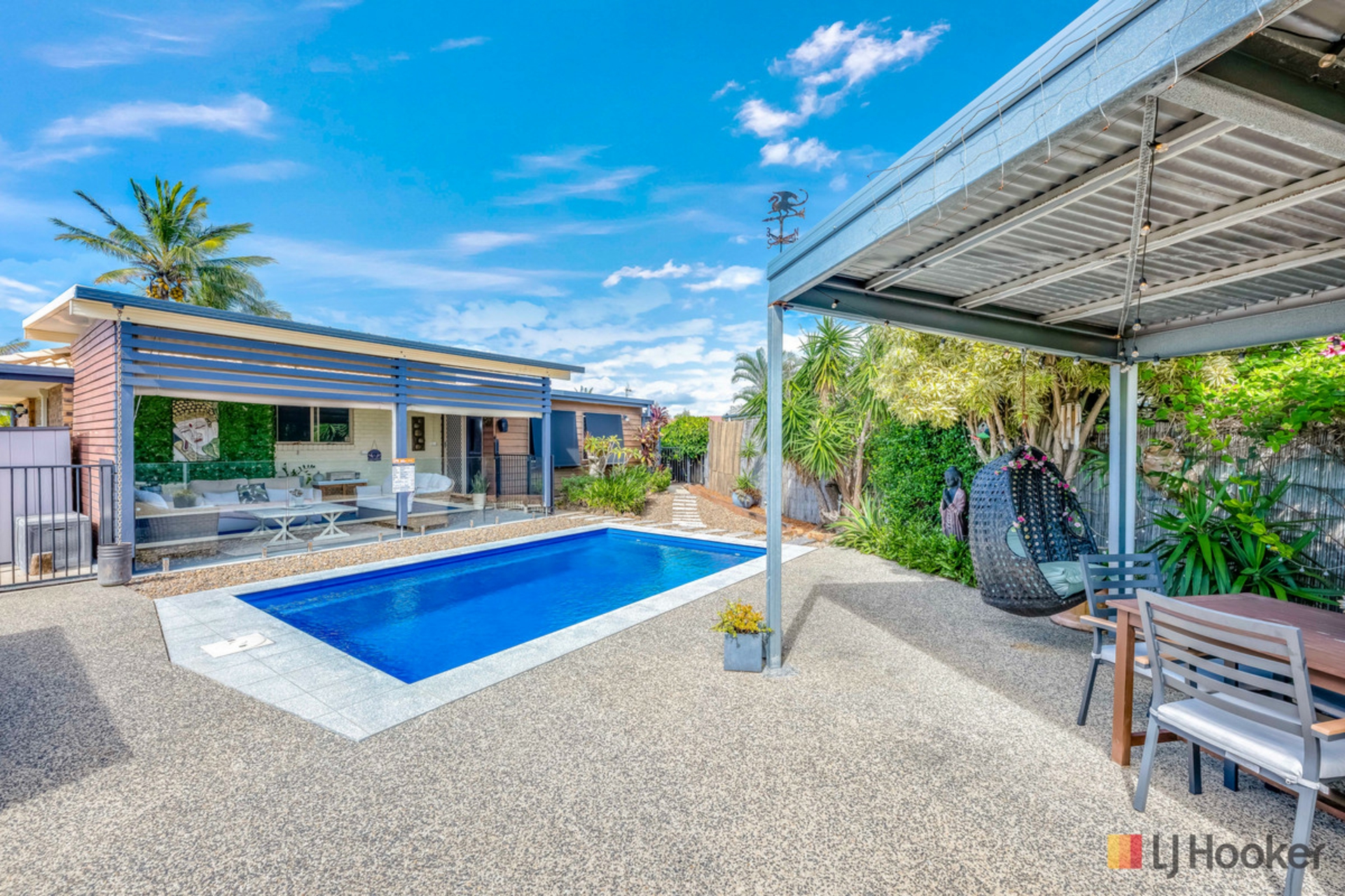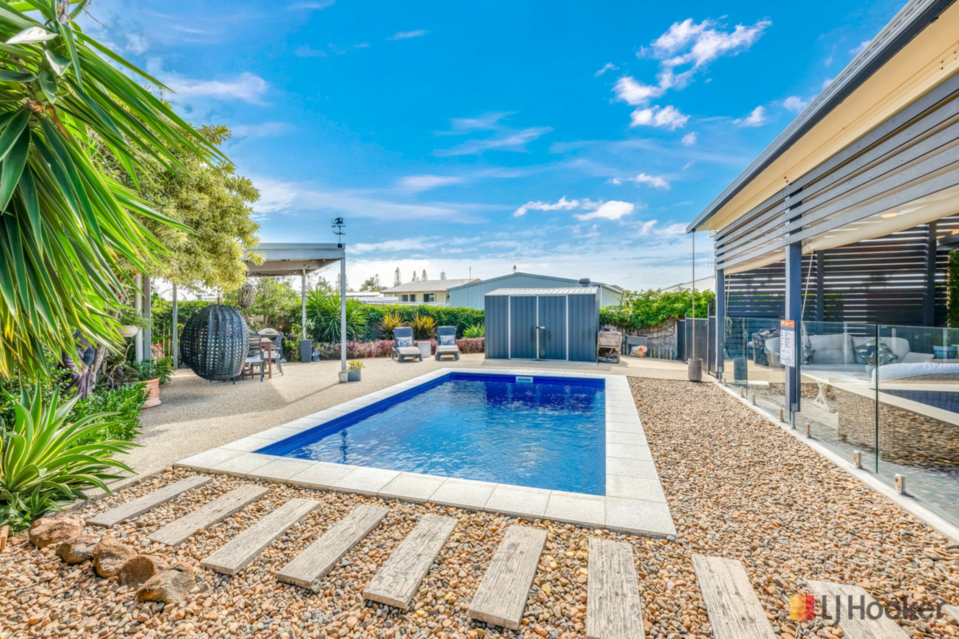 Positioned in a quiet cul-de-sac within walking distance to the ocean, this immaculate three-bedroom, 2 bathroom residence offers multiple living zones, excellent outdoor entertaining including in-ground swimming pool and exceptional storage for boats, caravans, and vehicles.