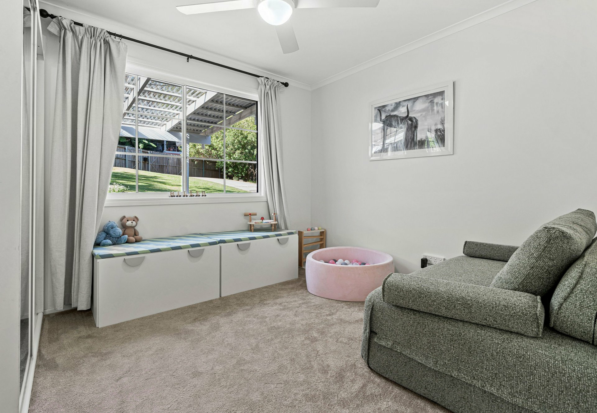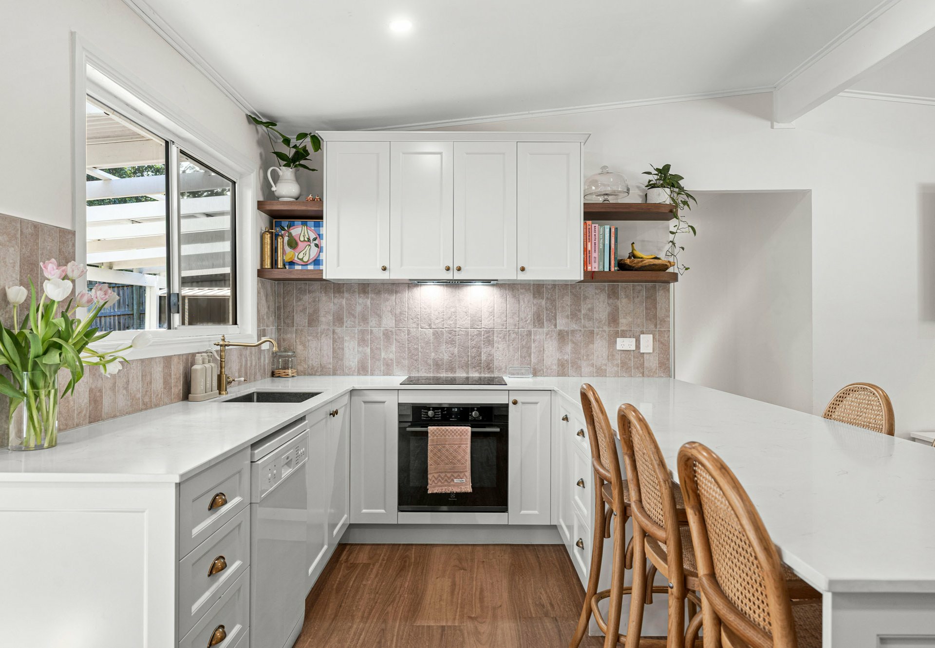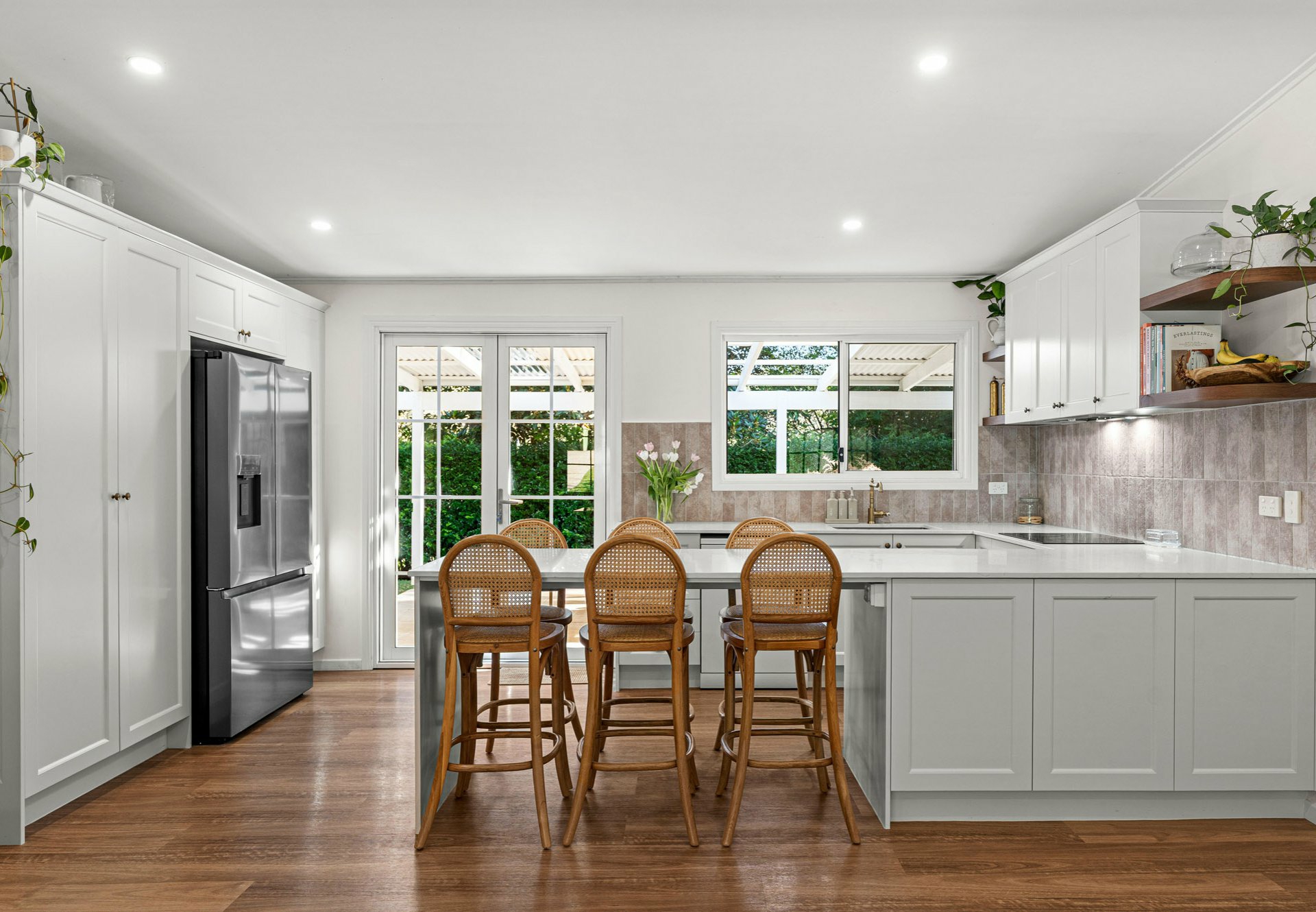 Designed for effortless living, the home centres around a light-filled open-plan layout that combines living and dining into one inviting space. Framed by raked ceilings and lush green outlooks from every room, it flows seamlessly to a large covered patio and beautifully manicured gardens, perfect for year-round entertaining. The gourmet kitchen sits at the heart of it all, blending style and functionality, while the peaceful reserve at the rear enhances the sense of privacy and space.
