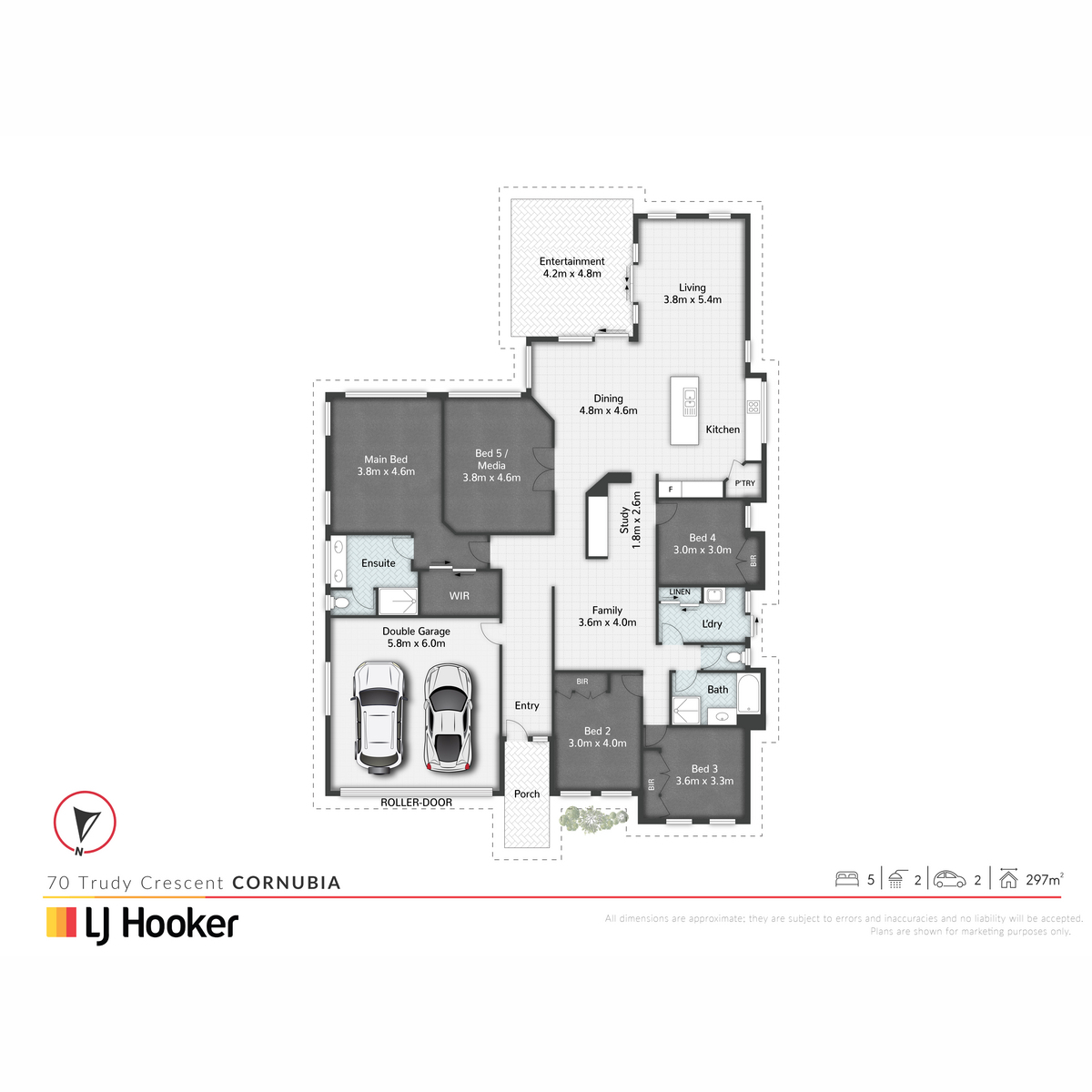 Designed to suit the needs of a busy, modern family, this single-level home boasts open living spaces, clean lines, and quality finishes. The opulent master suite features a walk-in robe and a striking ensuite with double vanities, while all bathrooms have quality caesar stone benchtops. The open plan kitchen, dining, and lounge areas connect seamlessly to the large alfresco entertaining area, perfect for gatherings. A large media room provides the separation that families desire, making this home ideal for both entertaining and everyday living.