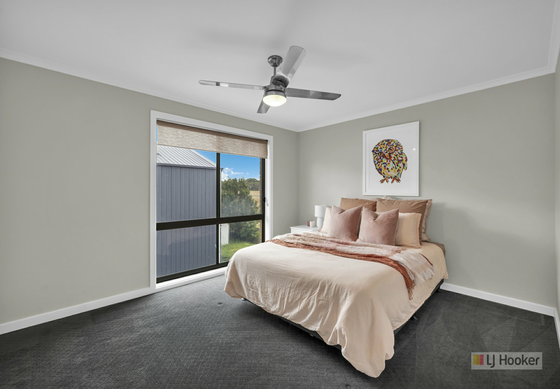 The ground floor comprises of a separate living area with bay views and split system. The spacious kitchen comes equipped with a 900mm gas cooktop, dishwasher, large island bench and a walk in pantry. All adjoining the dining and family room with a reverse cycle split system for comfort, which then connects with the private rear deck for BBQ’s and entertaining whilst taking in the stunning rural views of the Bass hinterland. The master suite has bay views, a walk in robe, ensuite with shower and toilet. There is also a separate powder room for guests. The views are amazing from downstairs as well and it is the perfect floorplan for those who are not comfortable with steps.