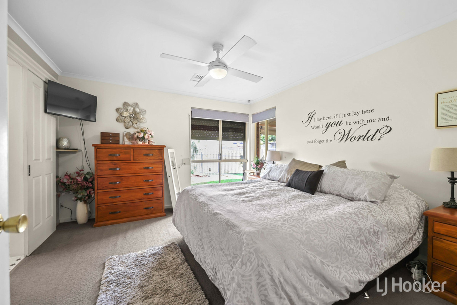 Offering three generous bedrooms, the master suite features a large walk-in robe, deluxe ensuite and stunning elevated views across the rolling hills. Bedroom two is complete with a built-in robe and the bedrooms are conveniently positioned near the main bathroom, which includes a bathtub, shower, vanity and separate toilet.