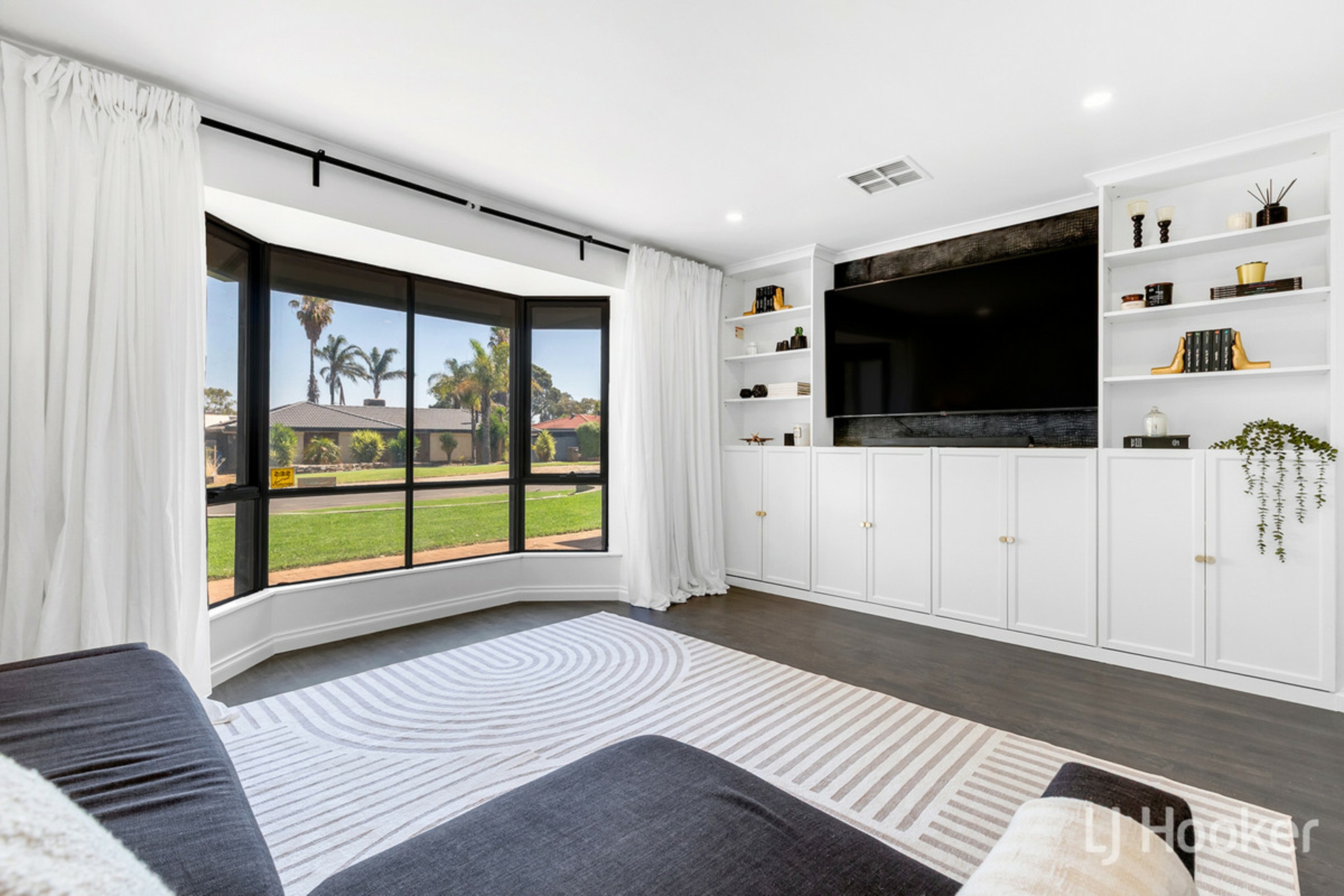 - Formal front lounge with built-in entertainment unit, bay window and roller shutters