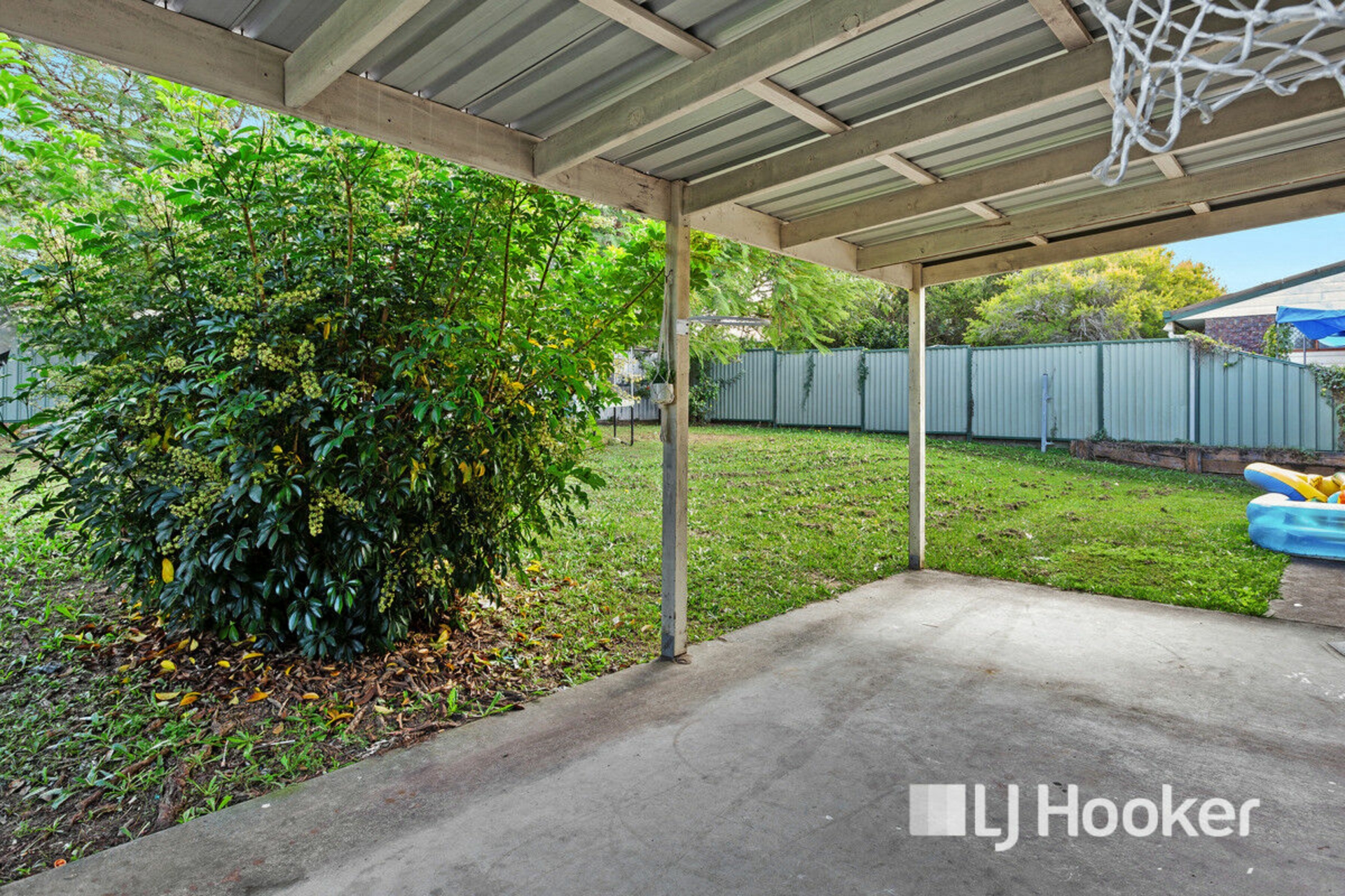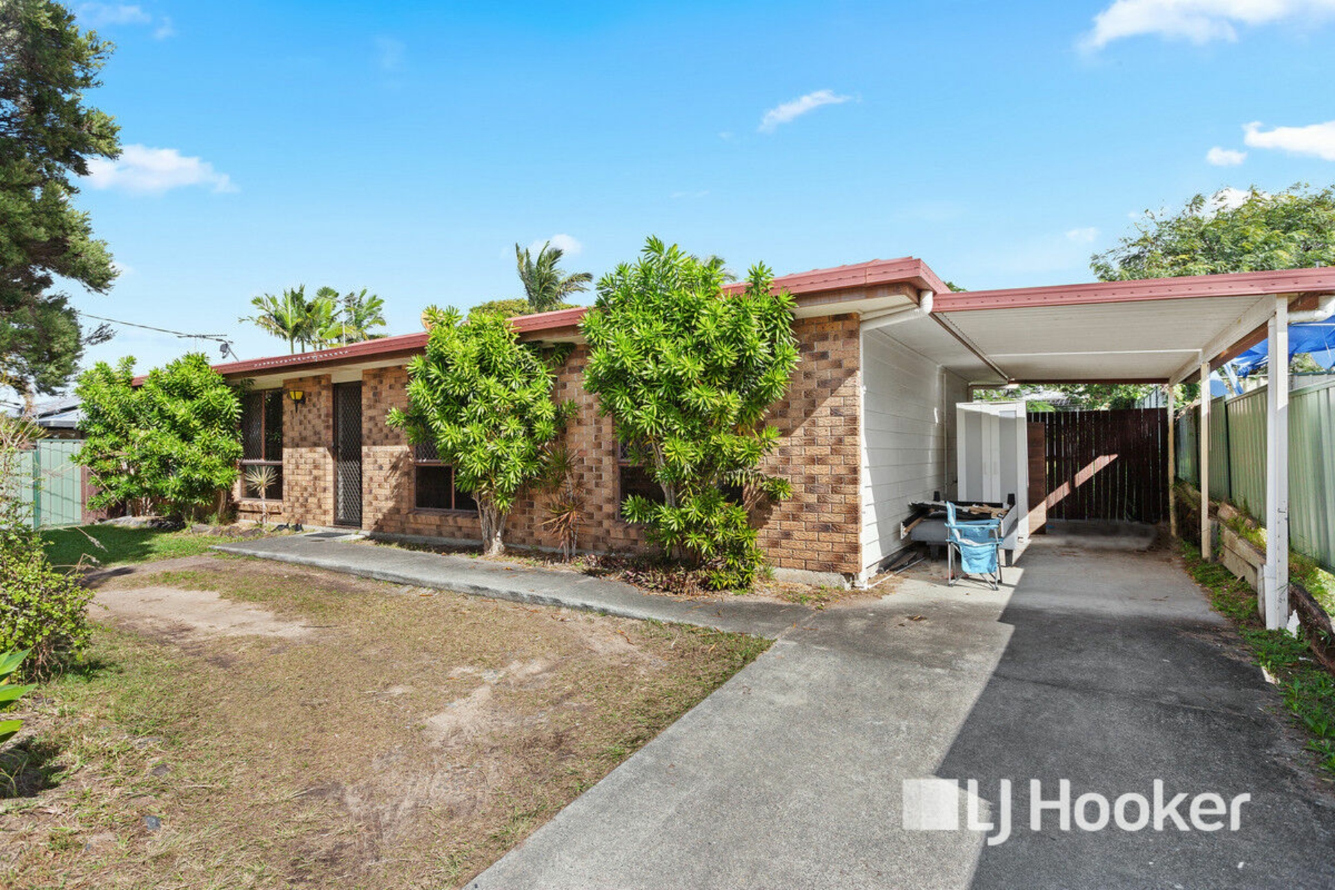 Carport with drive-through access, perfect for parking a caravan, boat, or trailer off the street