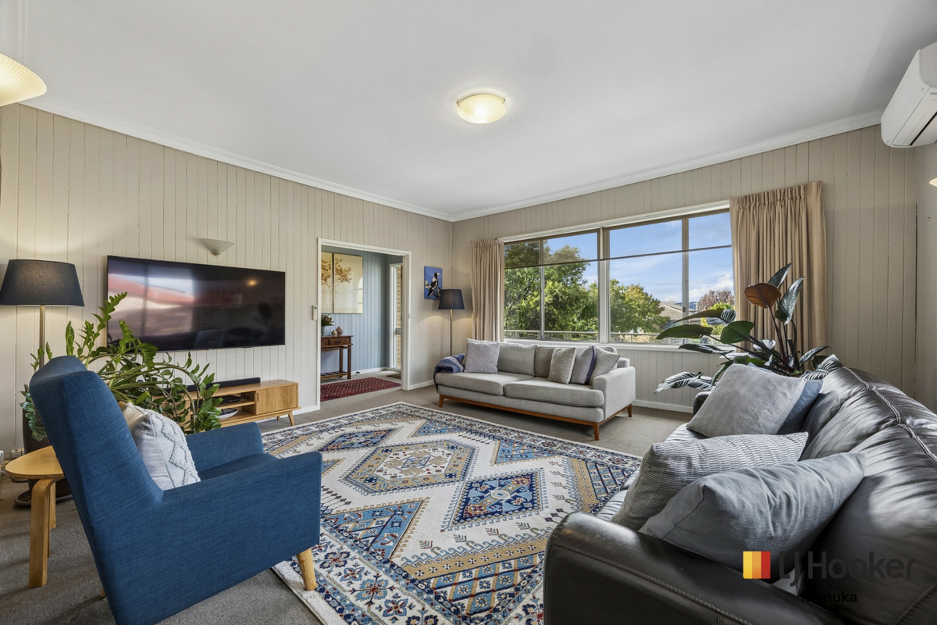Comfort is assured year-round with reverse cycle heating and cooling in the main living area, complemented by ducted heating and ceiling fans throughout the home.