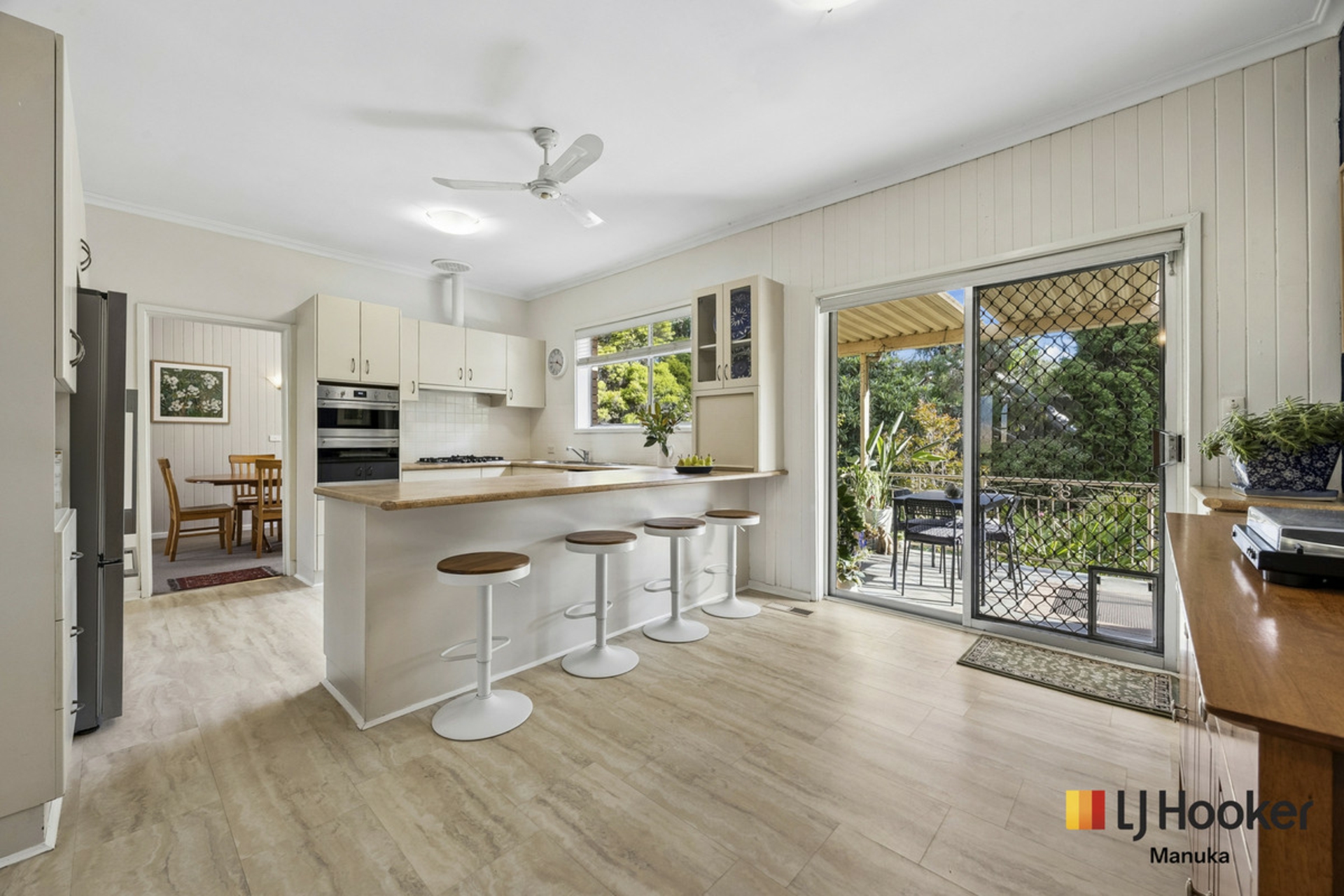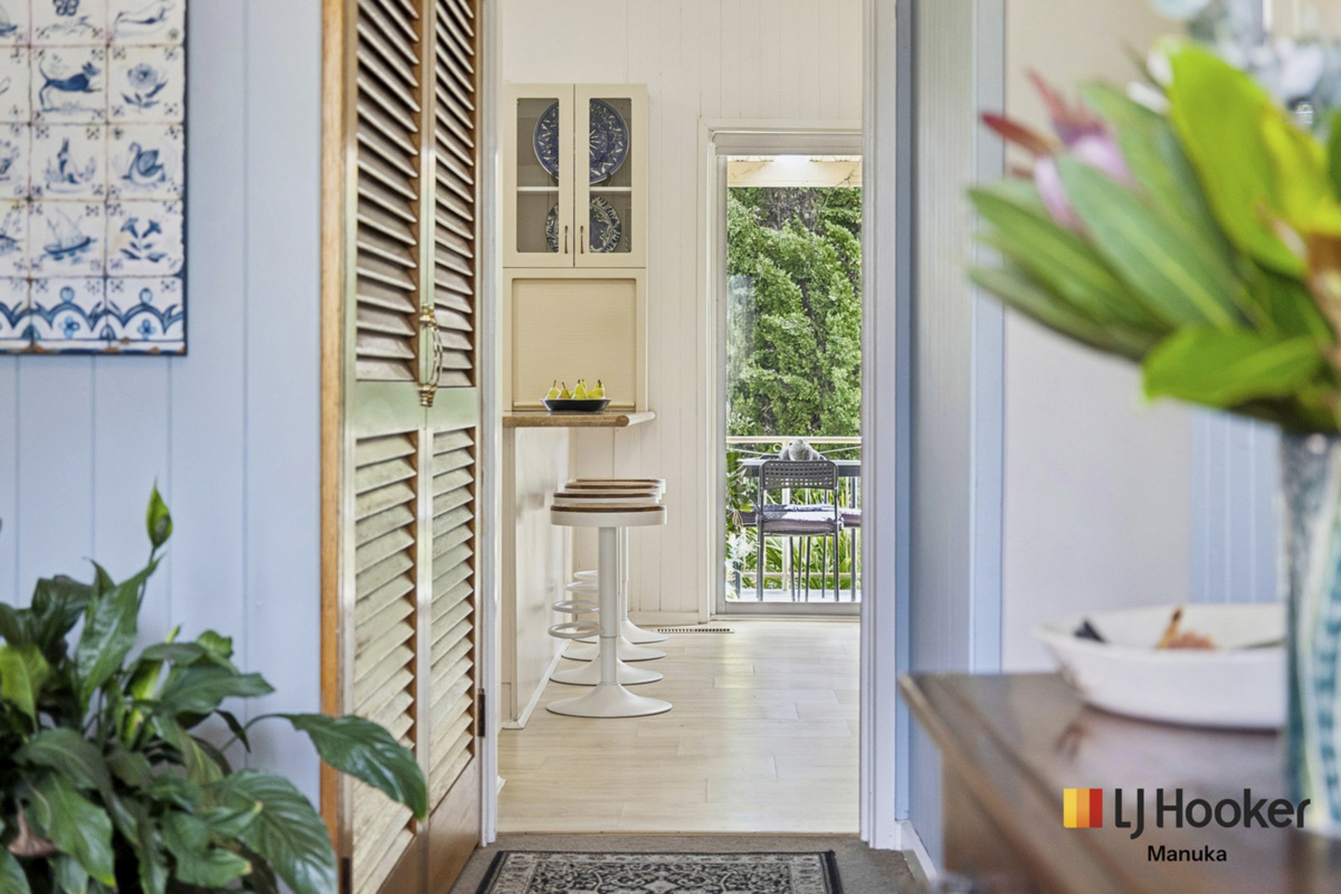 At the heart of the home, the kitchen seamlessly connects to an upstairs balcony, creating an ideal space for entertaining or enjoying your morning coffee. Complete with stairs leading down to the garden, this elevated outdoor area enhances the home's indoor-outdoor flow and connection to the landscaped backyard.
