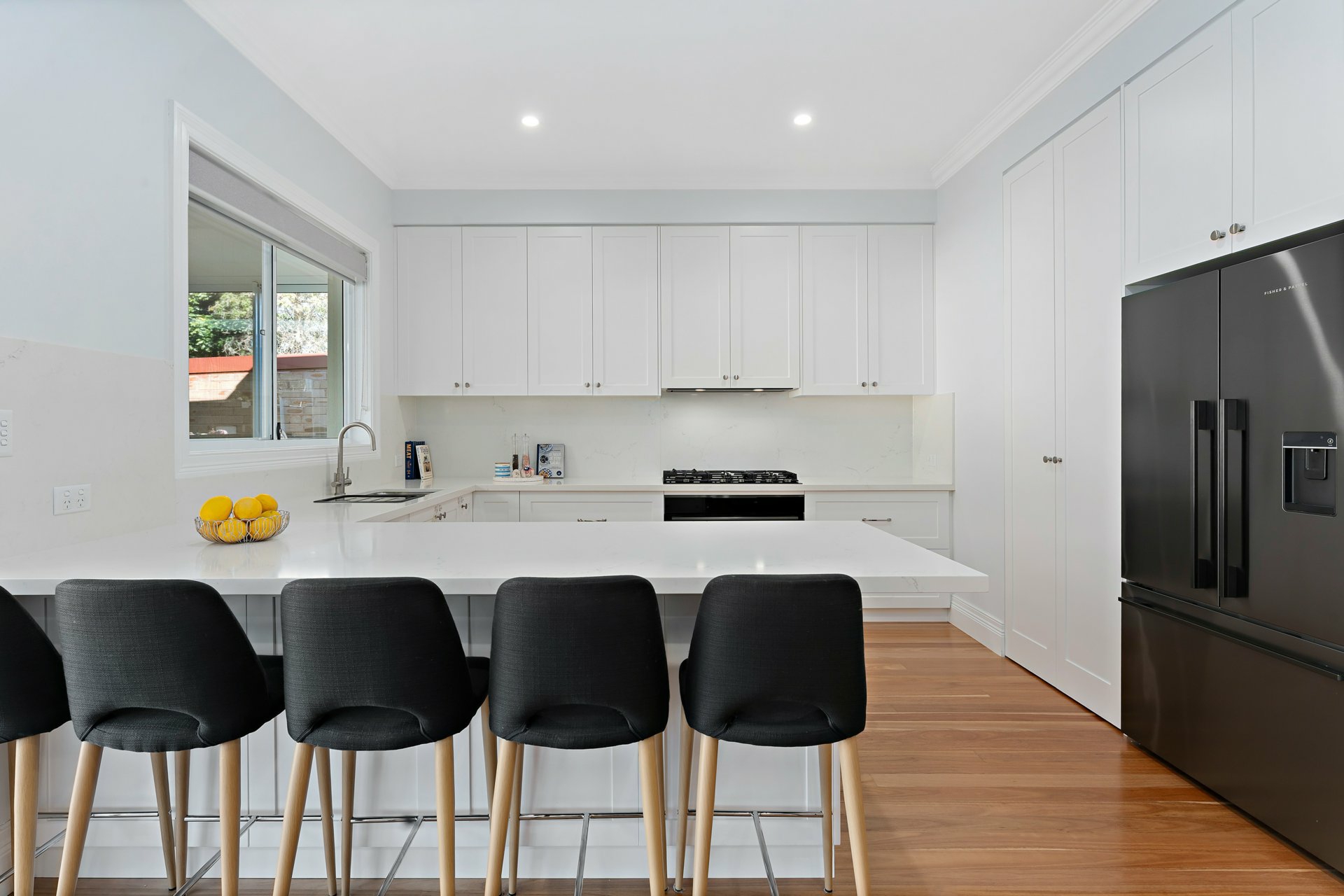 Featuring three generous bedrooms – the master suite is a private retreat, complete with walk in wardrobe and ensuite, while additional bedrooms feature built-in robes, a luxurious main bathroom with freestanding bathtub and frameless glass shower, perfectly complement the designer kitchen with premium gas appliances, Caesarstone benchtops and walk-in pantry.