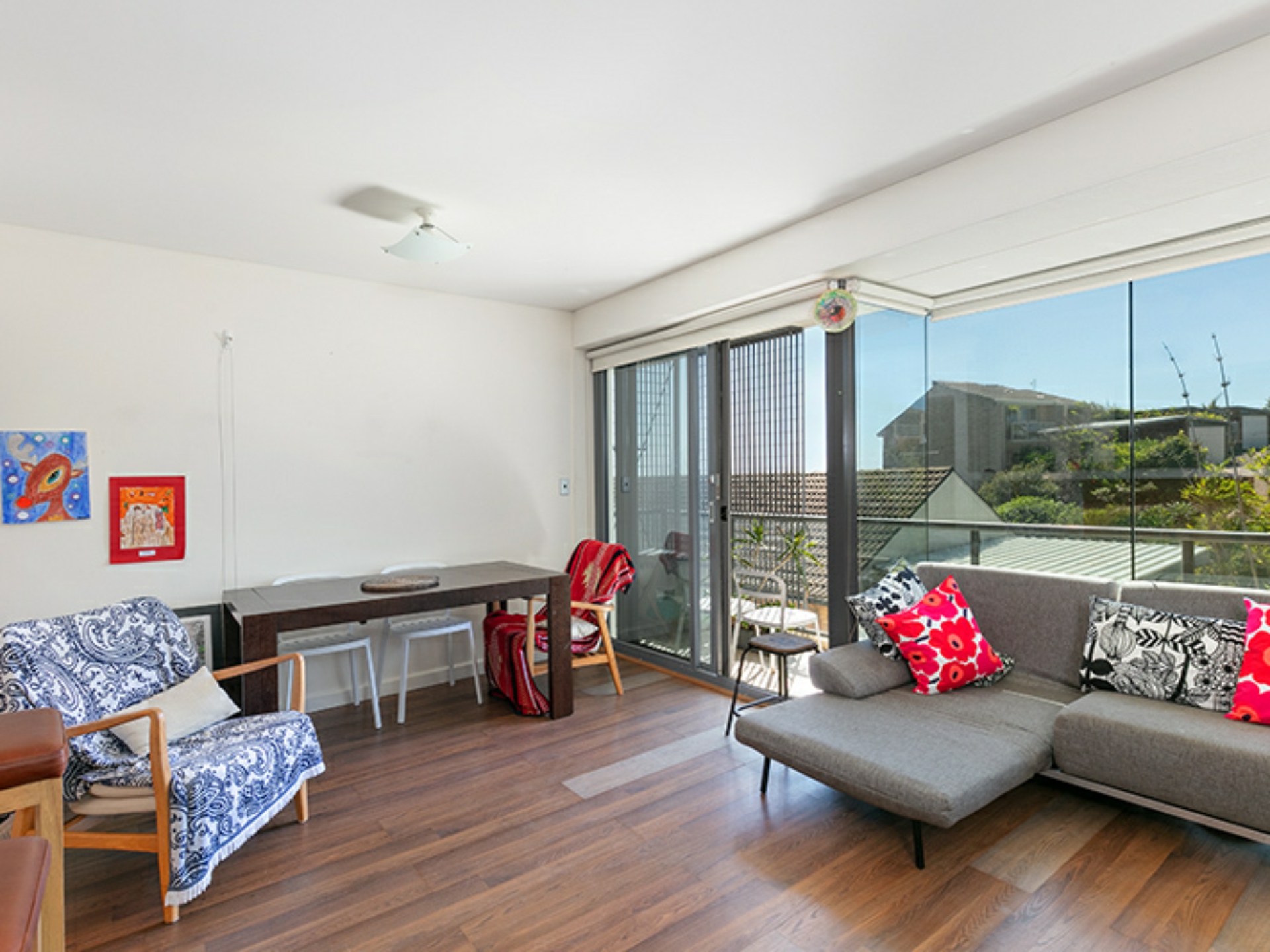 - Light & bright living area with floor to ceiling glass windows & doors