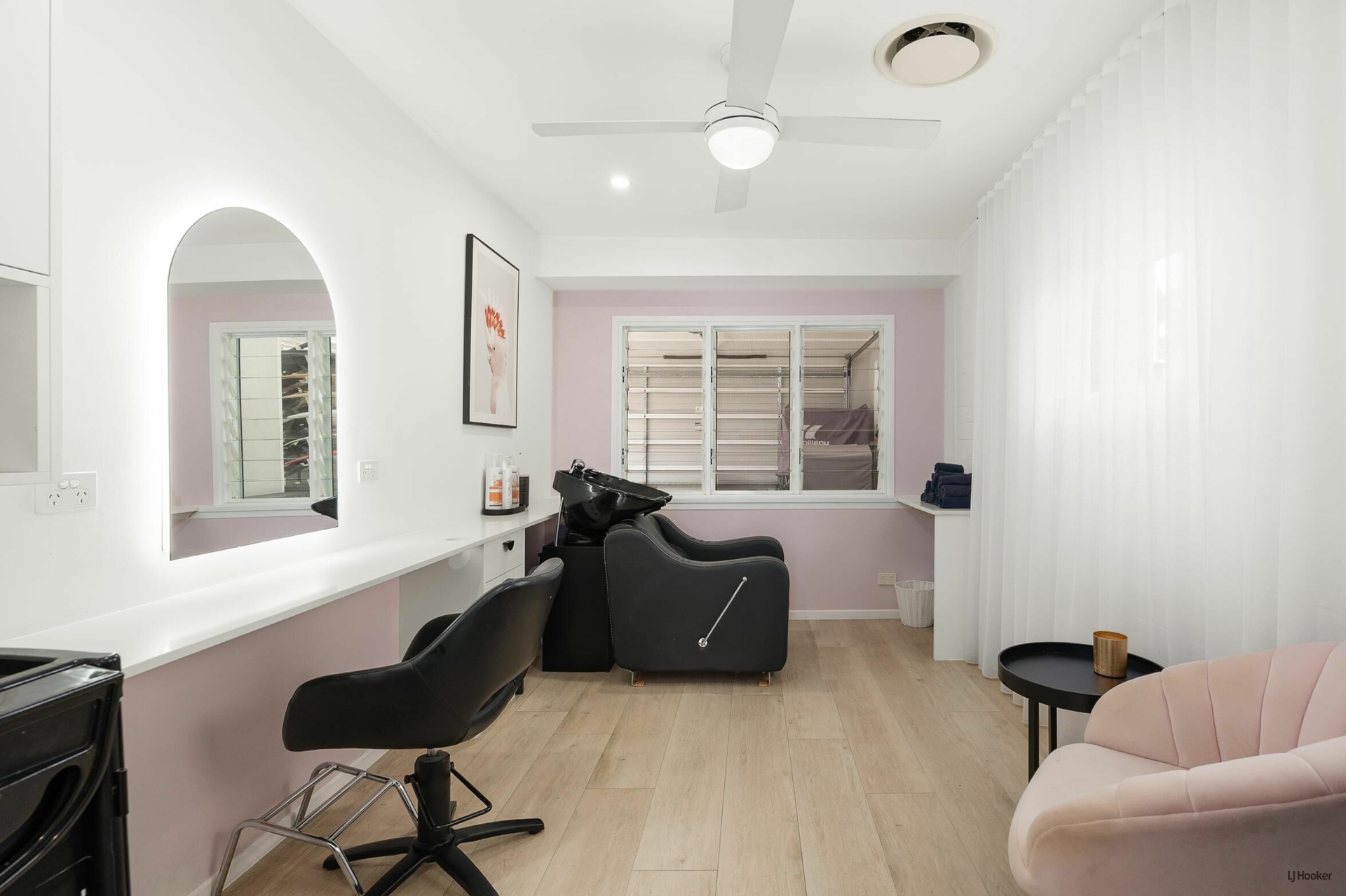 Positioned on a flat, fully fenced block, the property features a wellness room with gym, a self-contained granny flat, an entertainer's deck overlooking the inground pool, and even a salon currently used for hairdressing, ideal for home business owners.