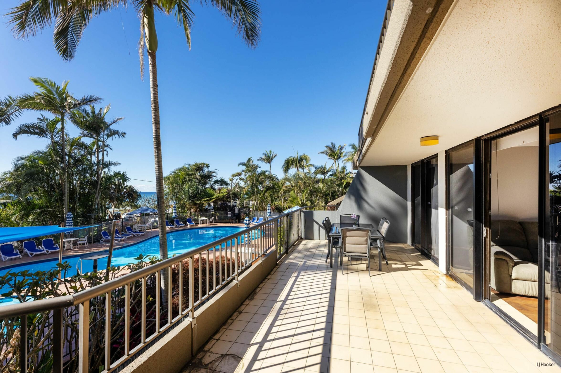 The expansive terrace-style balcony is your front-row seat to the pool and ocean, offering one of the largest outdoor areas in the complex - a major advantage for both lifestyle and letting appeal.