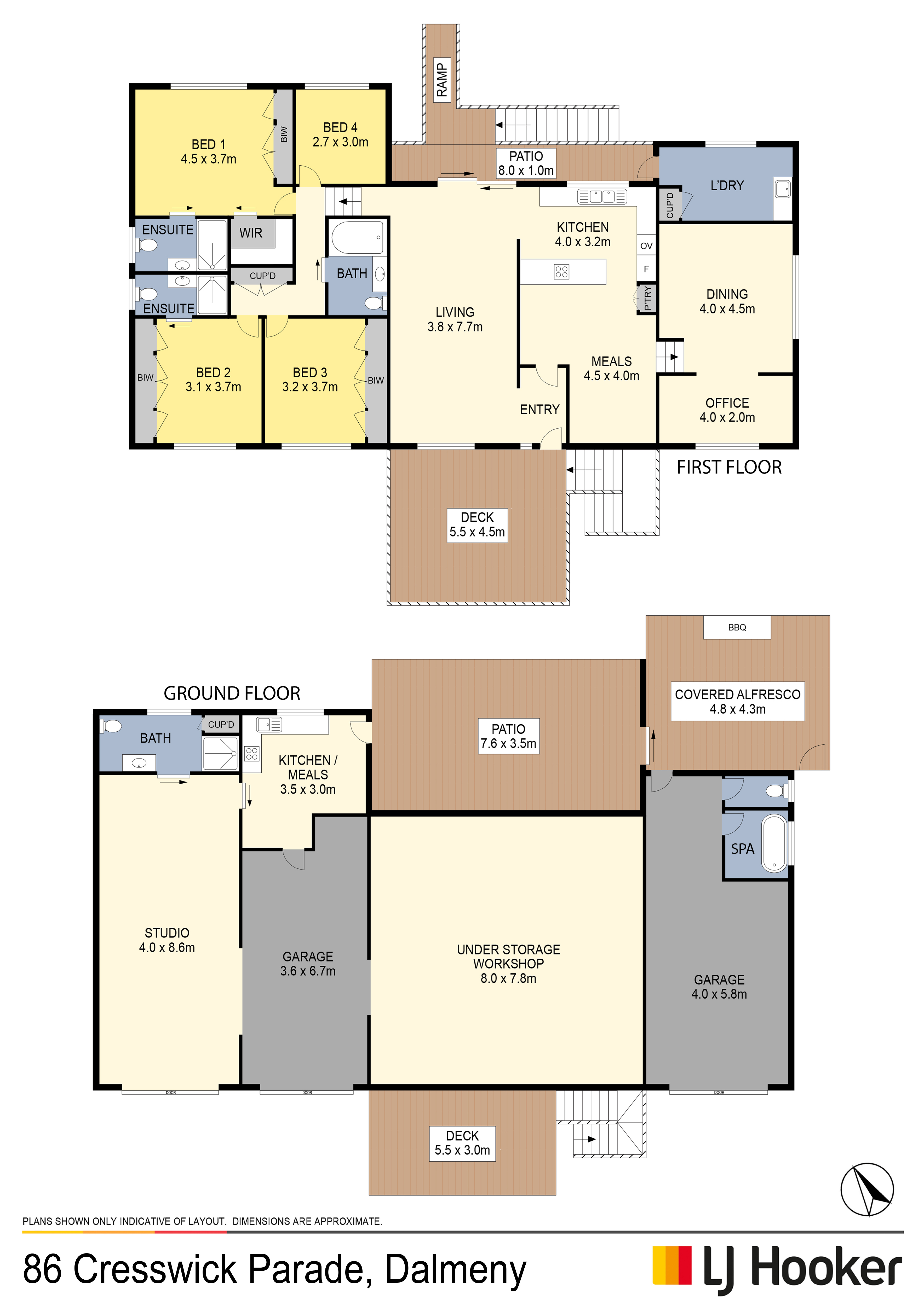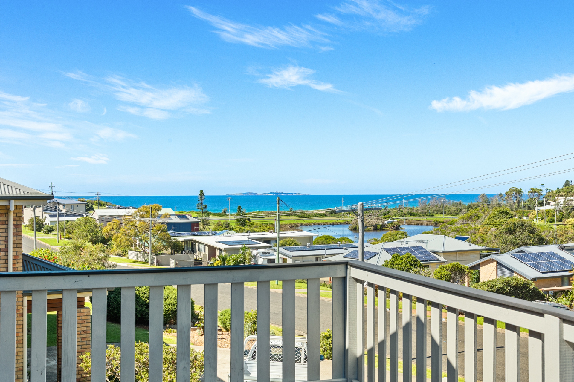 Upstairs features four generous bedrooms and three bathrooms, complemented by a contemporary layout and spectacular views. The spacious living area is light-filled and inviting, with sweeping views over the duck pond and out to Montague. Step outside onto the covered front deck and enjoy the sunrise.