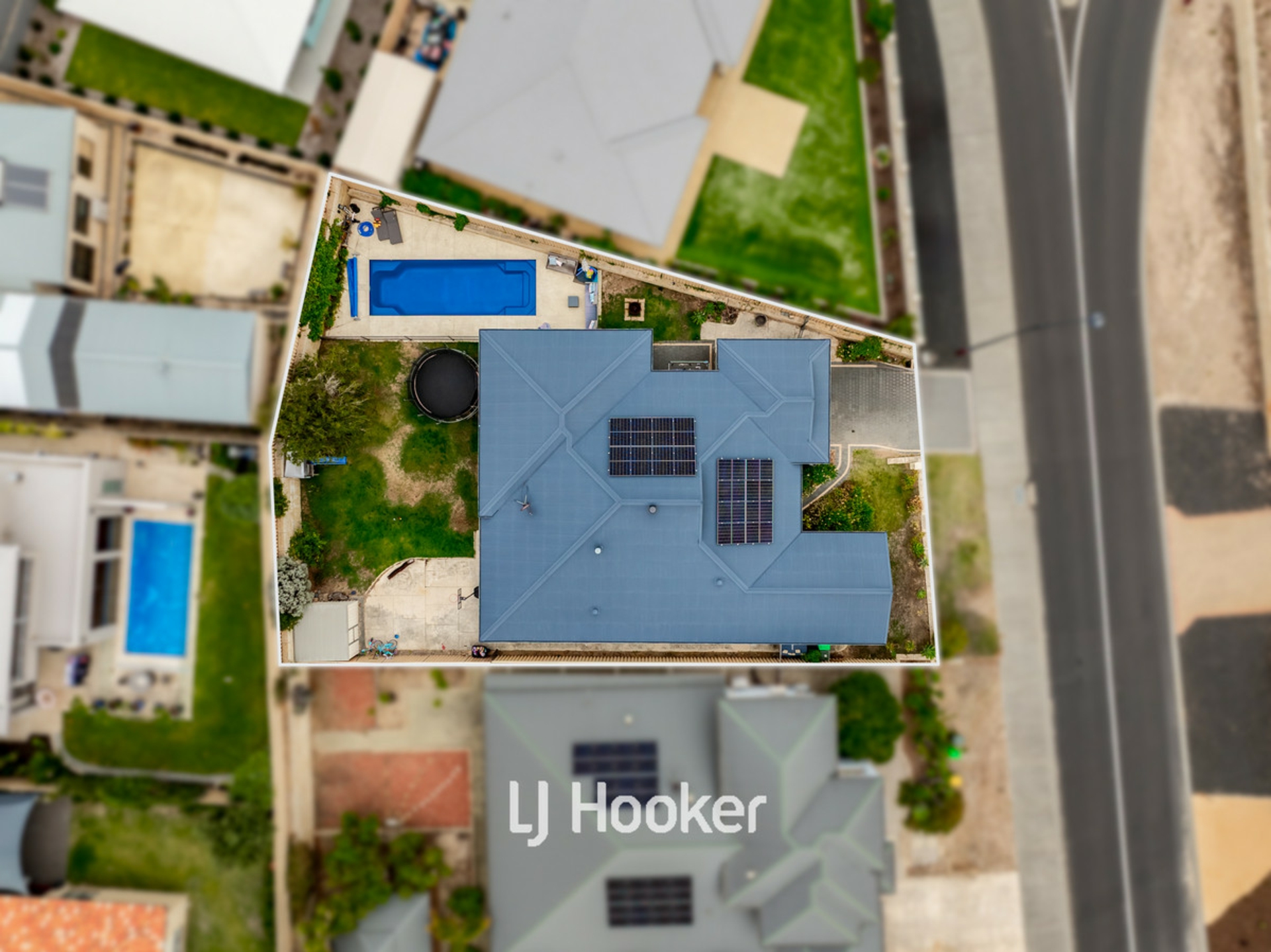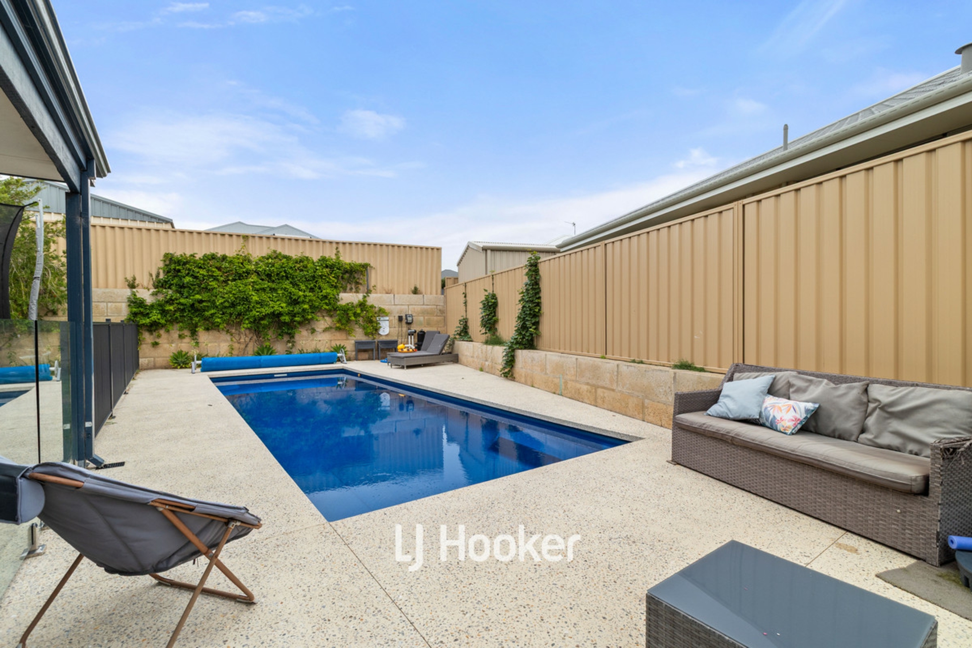 - Private backyard with pool featuring exposed aggregate