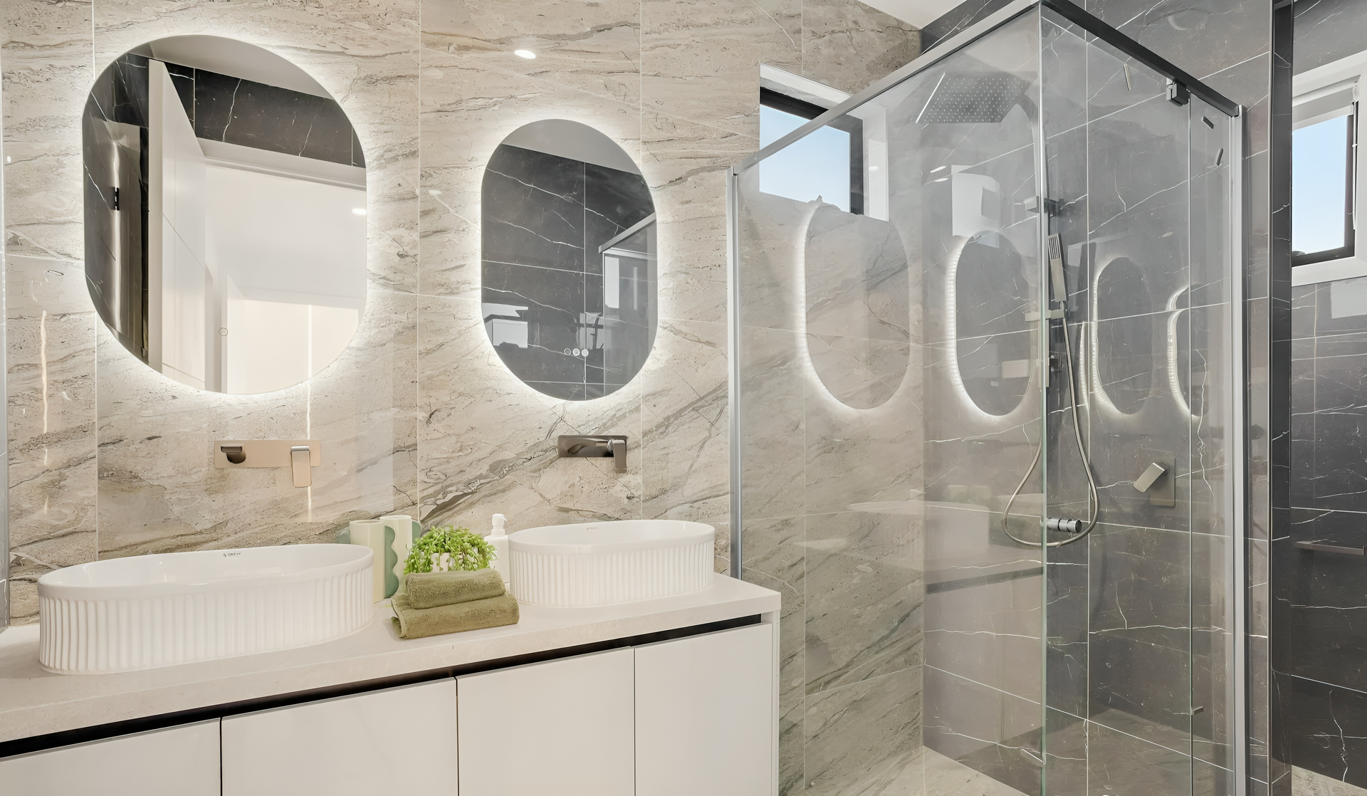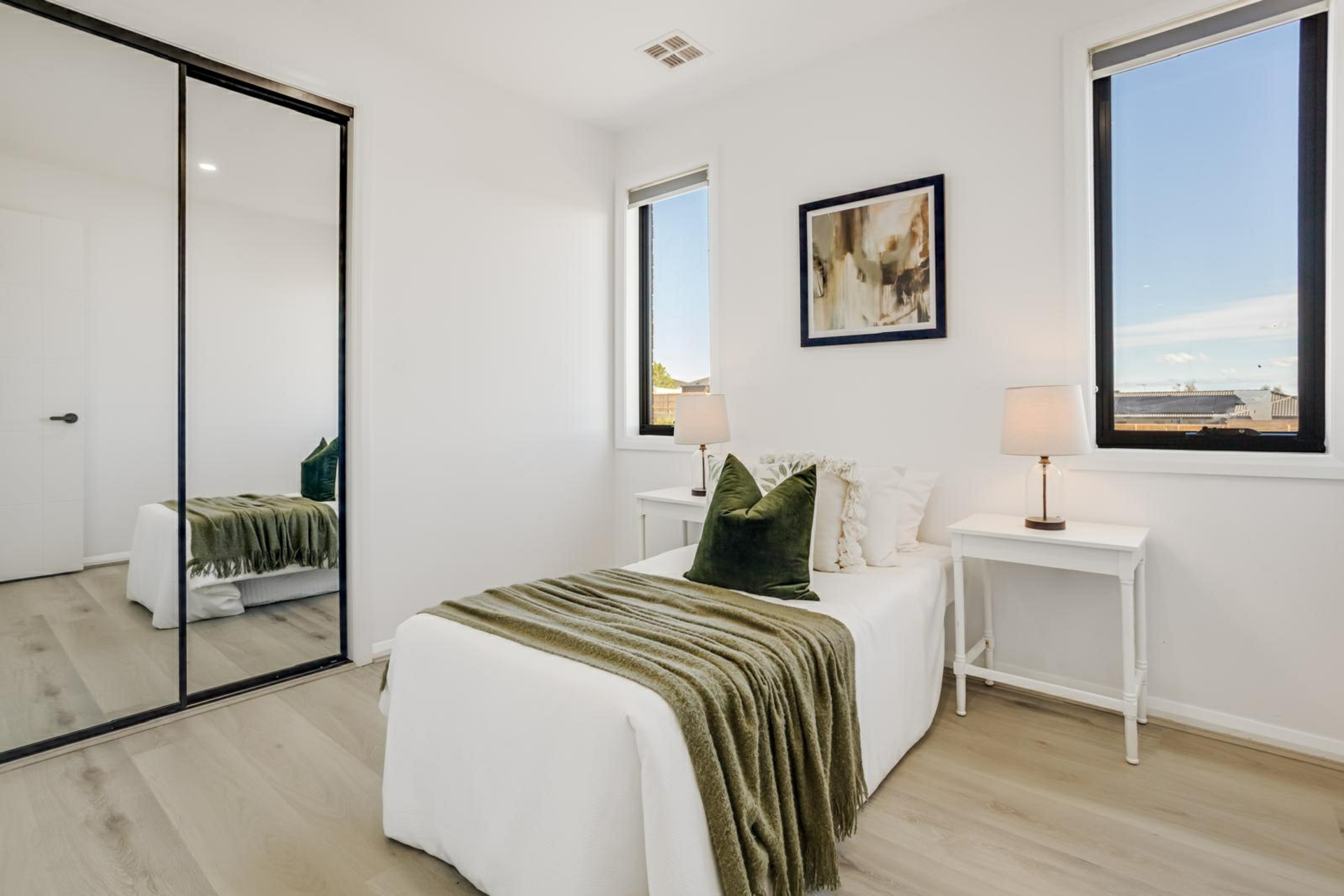The home comprises four spacious bedrooms, including a master retreat complete with mirrored robes and a beautifully appointed ensuite. Additional bedrooms are serviced by a modern central bathroom, enhanced with practical shower niches and contemporary finishes throughout.