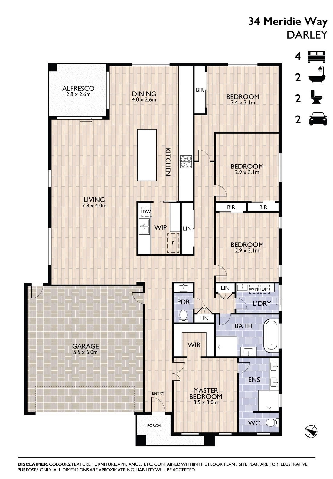 Positioned in a peaceful pocket of Darley, this beautifully presented home at 34 Meridie Way offers the perfect fusion of style, comfort, and practicality. Set on an approx. 400sqm allotment and framed by pond views at the front, this east-facing residence welcomes you with an abundance of natural light and a calming sense of space from the moment you arrive.