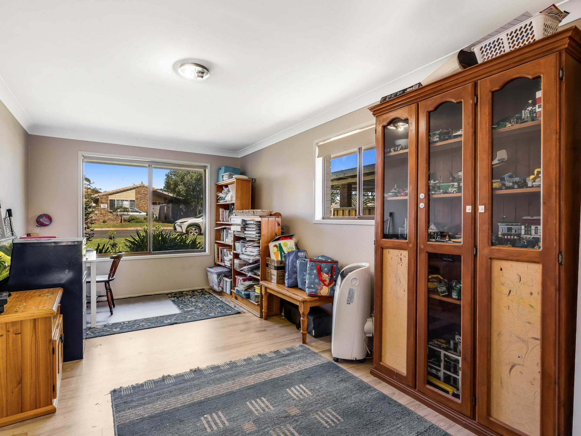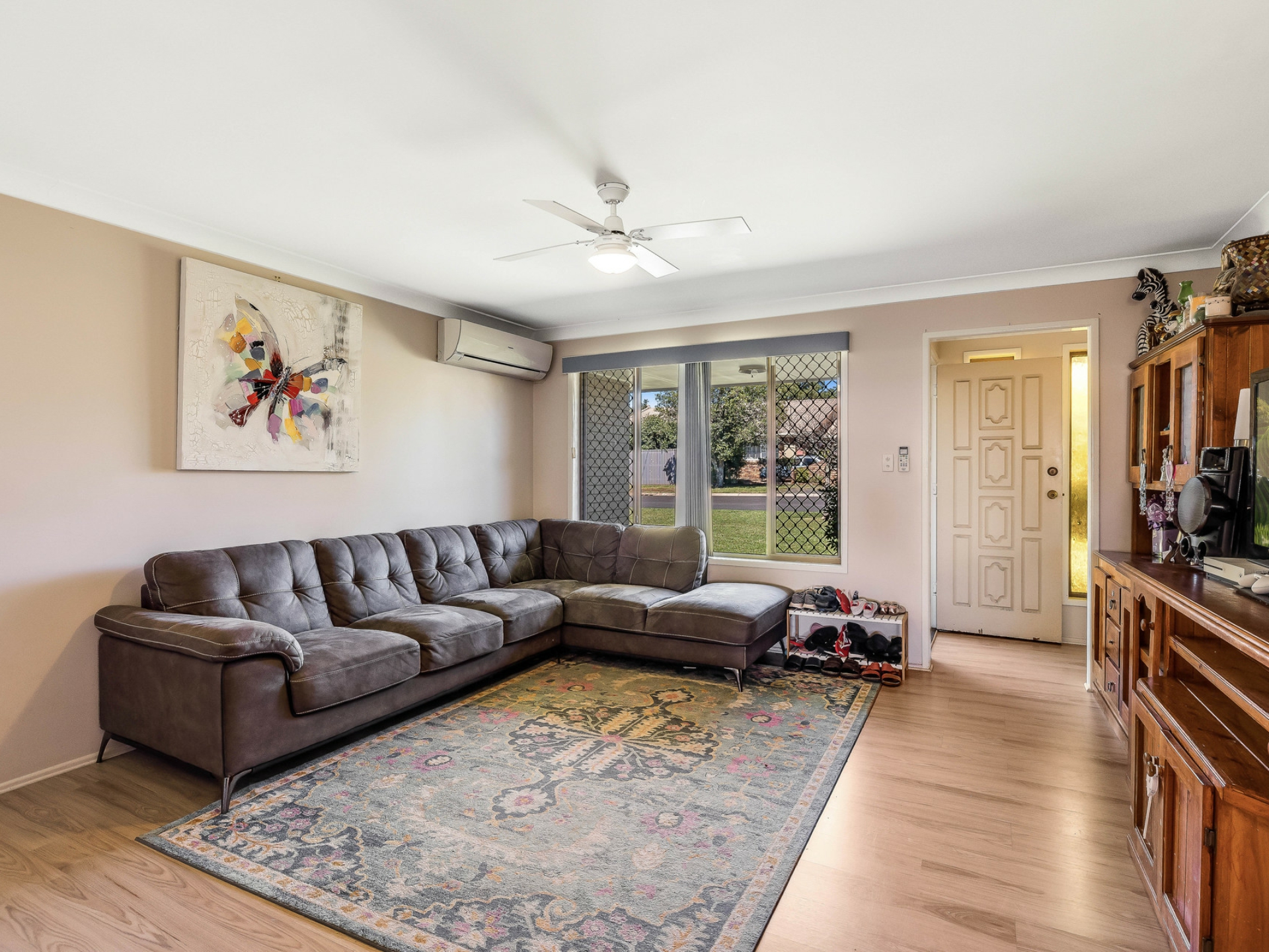 The functional floorplan comprises several good-sized living areas, ideally separated from the bedrooms. The secure entry leads into a comfortable air-conditioned living room and adjoining open-plan kitchen and dining room. Enjoying a north-eastern aspect, the light and bright kitchen has clean lines, plenty of bench and cupboard space and a view to the back yard. Through a large window, the dining area also has the same outlook. A separate, well-lit rumpus room is accessed through the dining room. Appealing timber look flooring throughout connects the living areas to the bedroom zone. All queen sized bedrooms are built-in, have ceiling fans and pivot around the family bathroom, with separate bath, shower and toilet.
