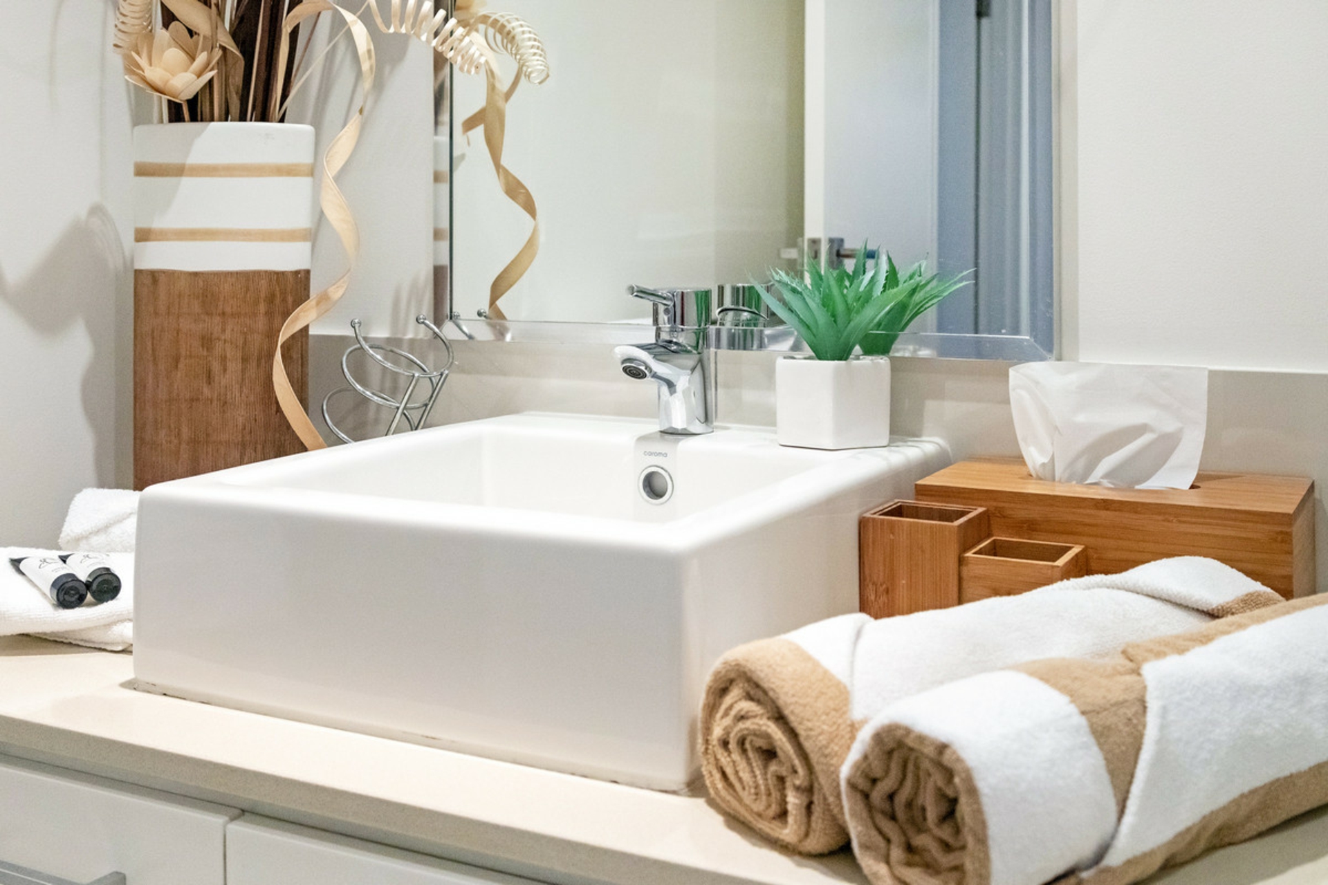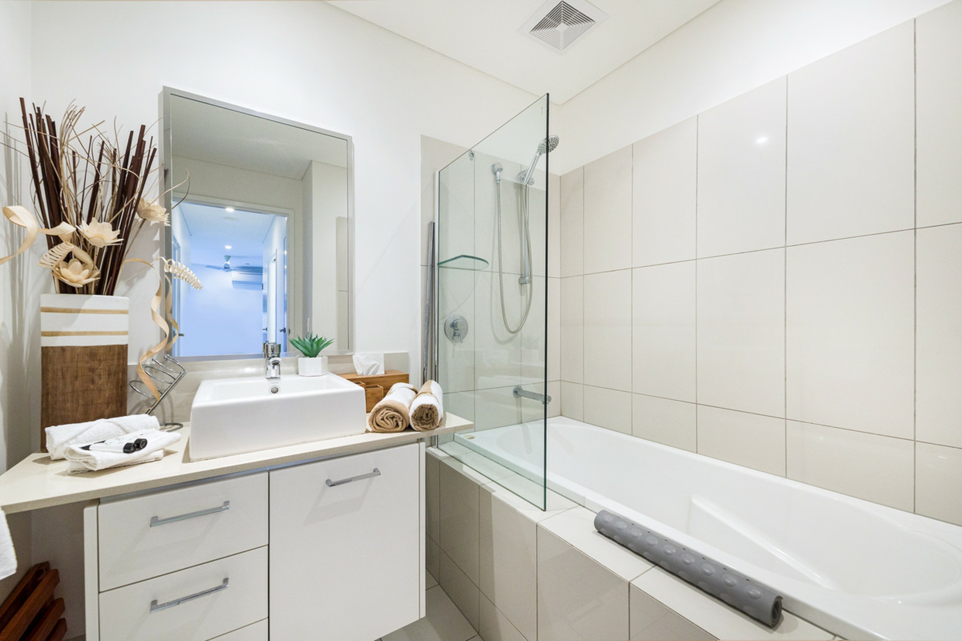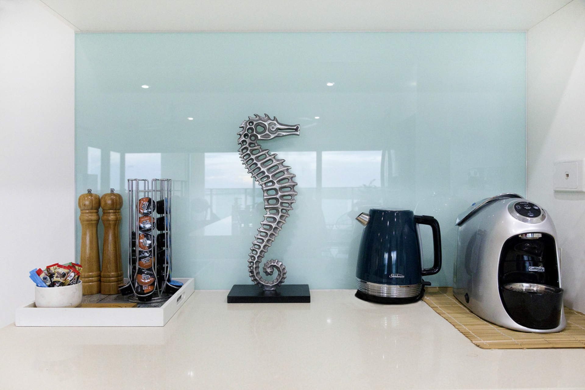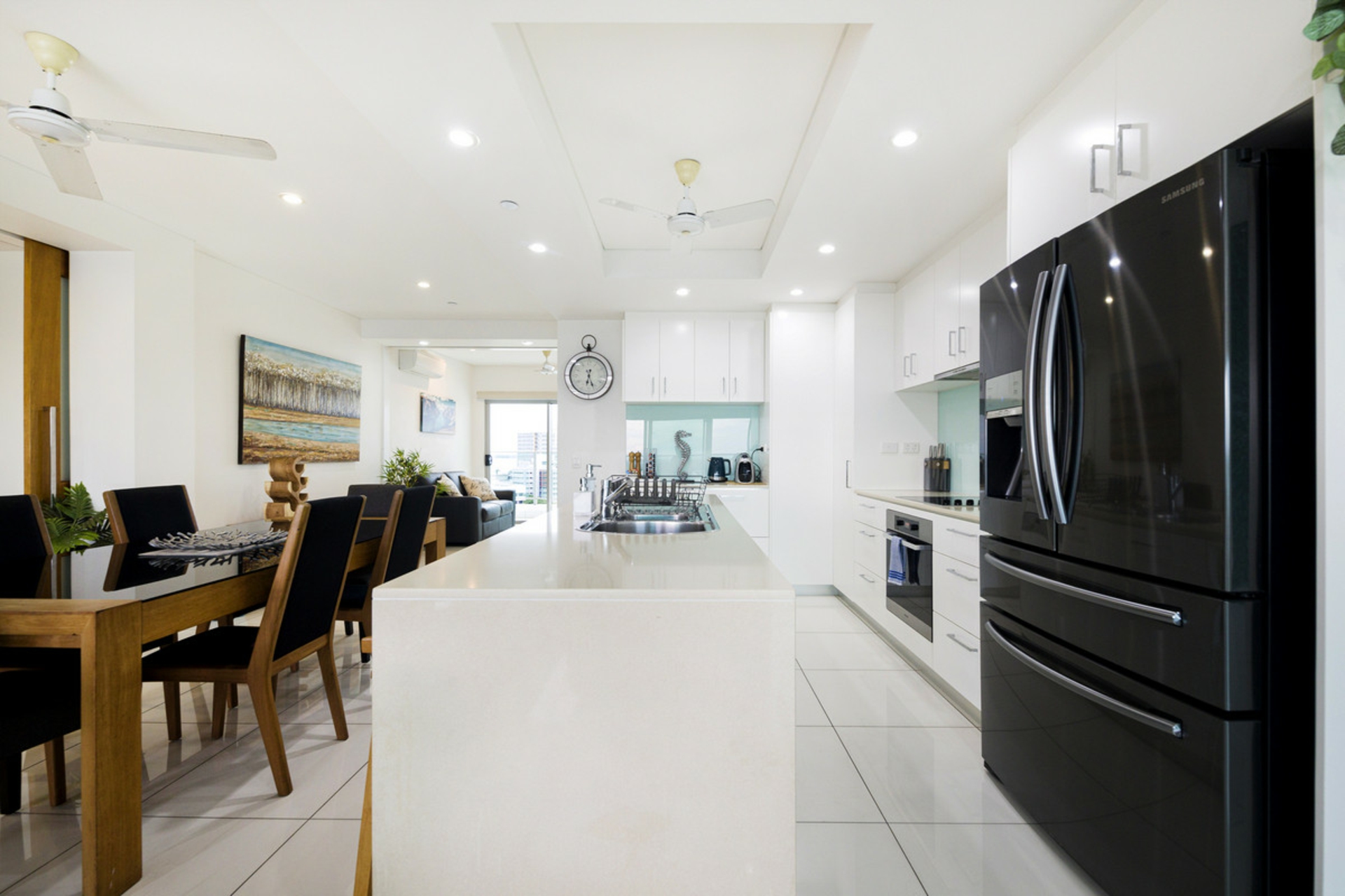 • Polished floor tiles and stone bench tops