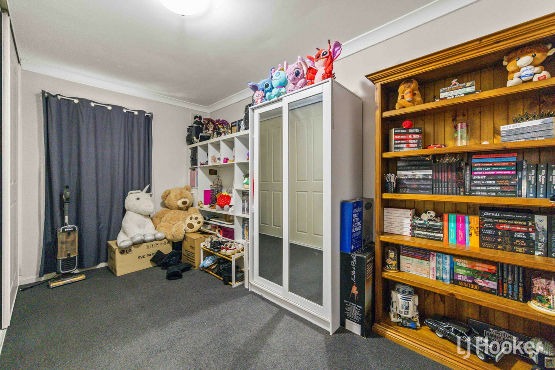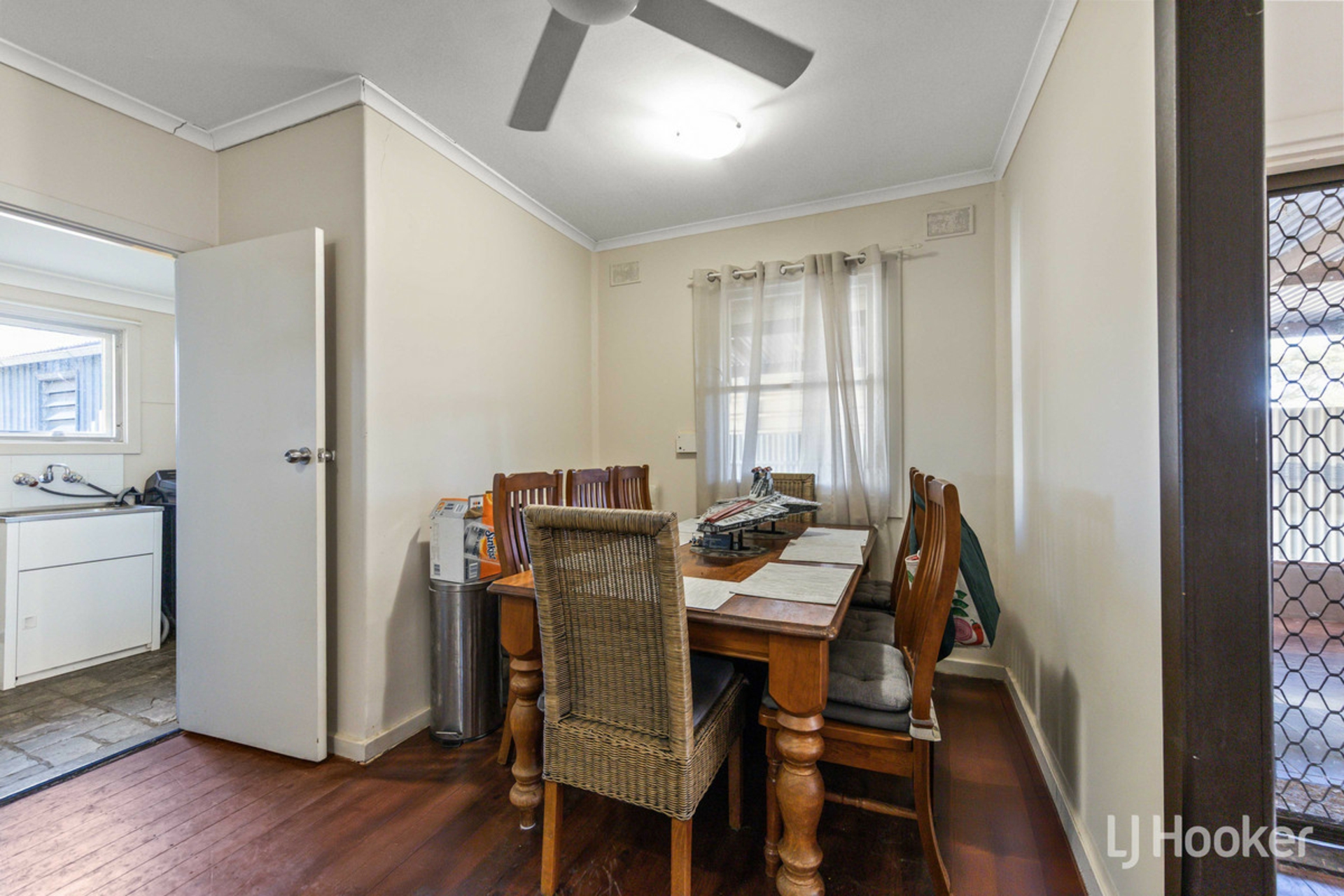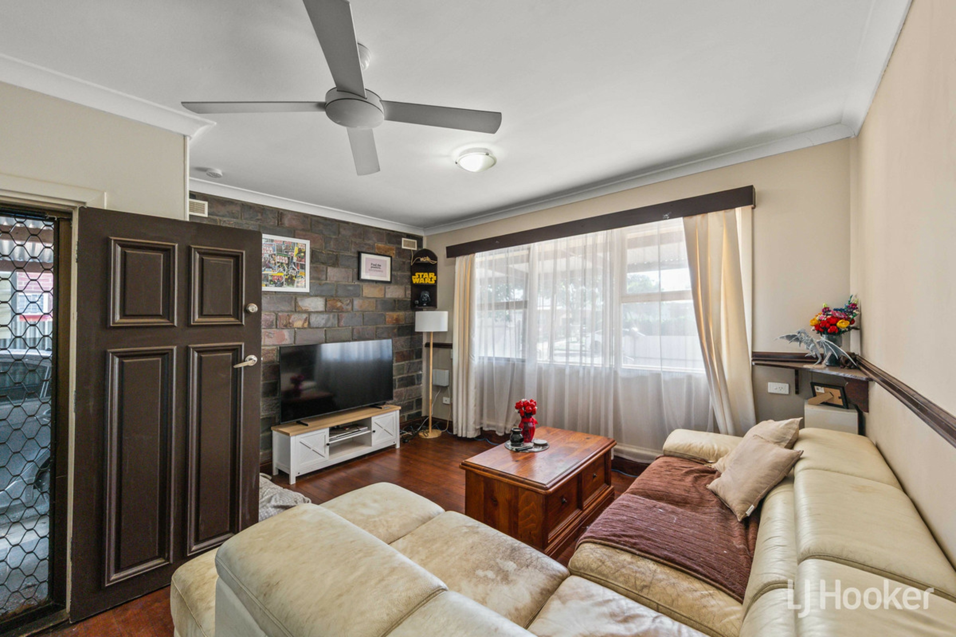As you step beyond the front fence, you are welcomed by low maintenance gardens and a charming porch flowing off the carport. Inside, the spacious family room creates a warm and inviting atmosphere, complete with a ceiling fan, slate stone feature wall, and floorboards.