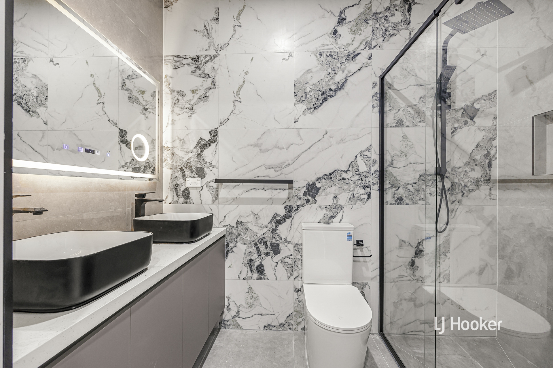 - Additional highlights include a secure double garage with internal access, refrigerated heating & cooling, downlights throughout, high-quality fittings, LED mirrors in bathrooms, and a separate laundry.