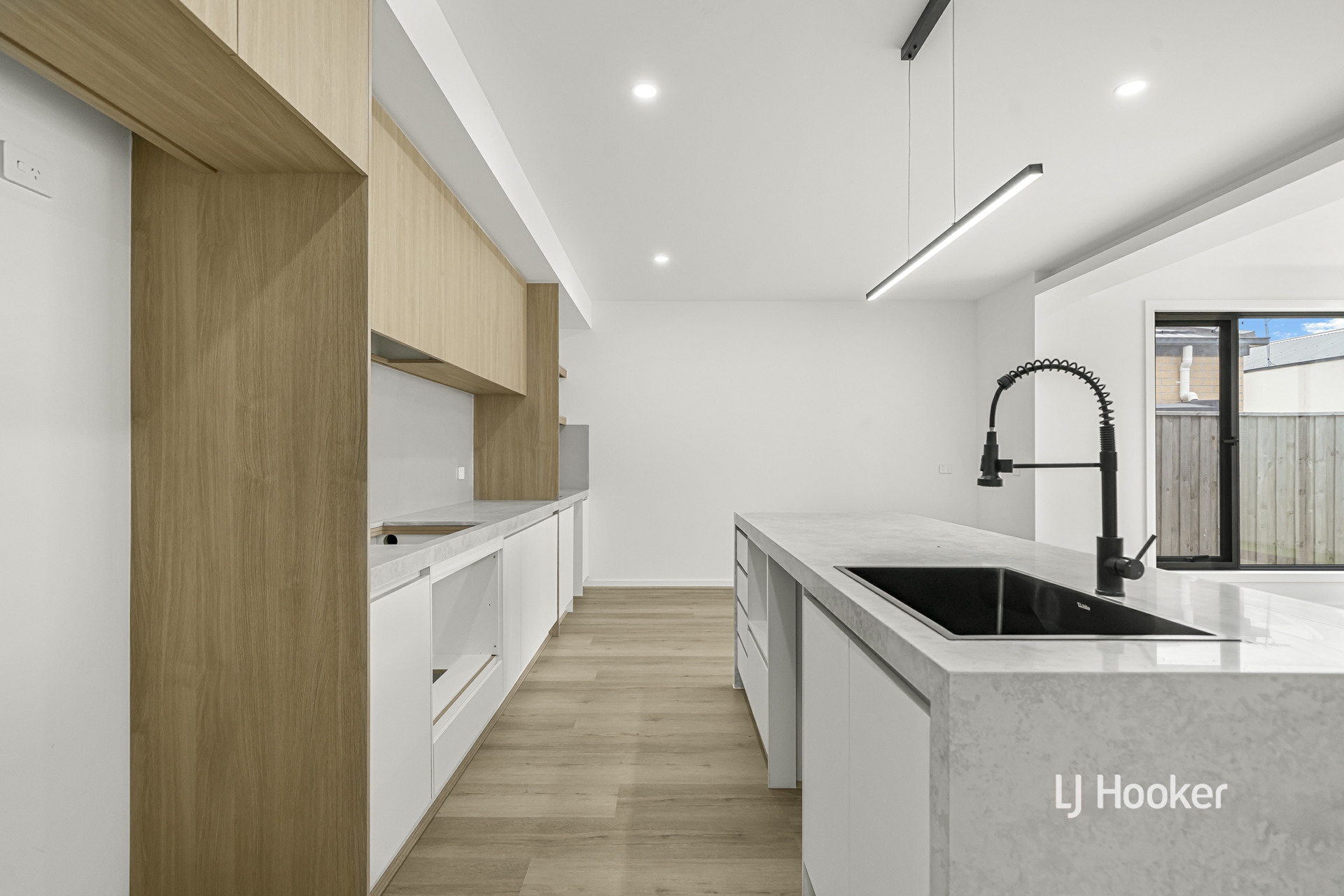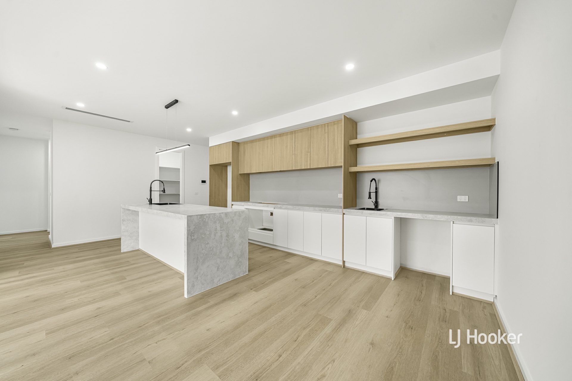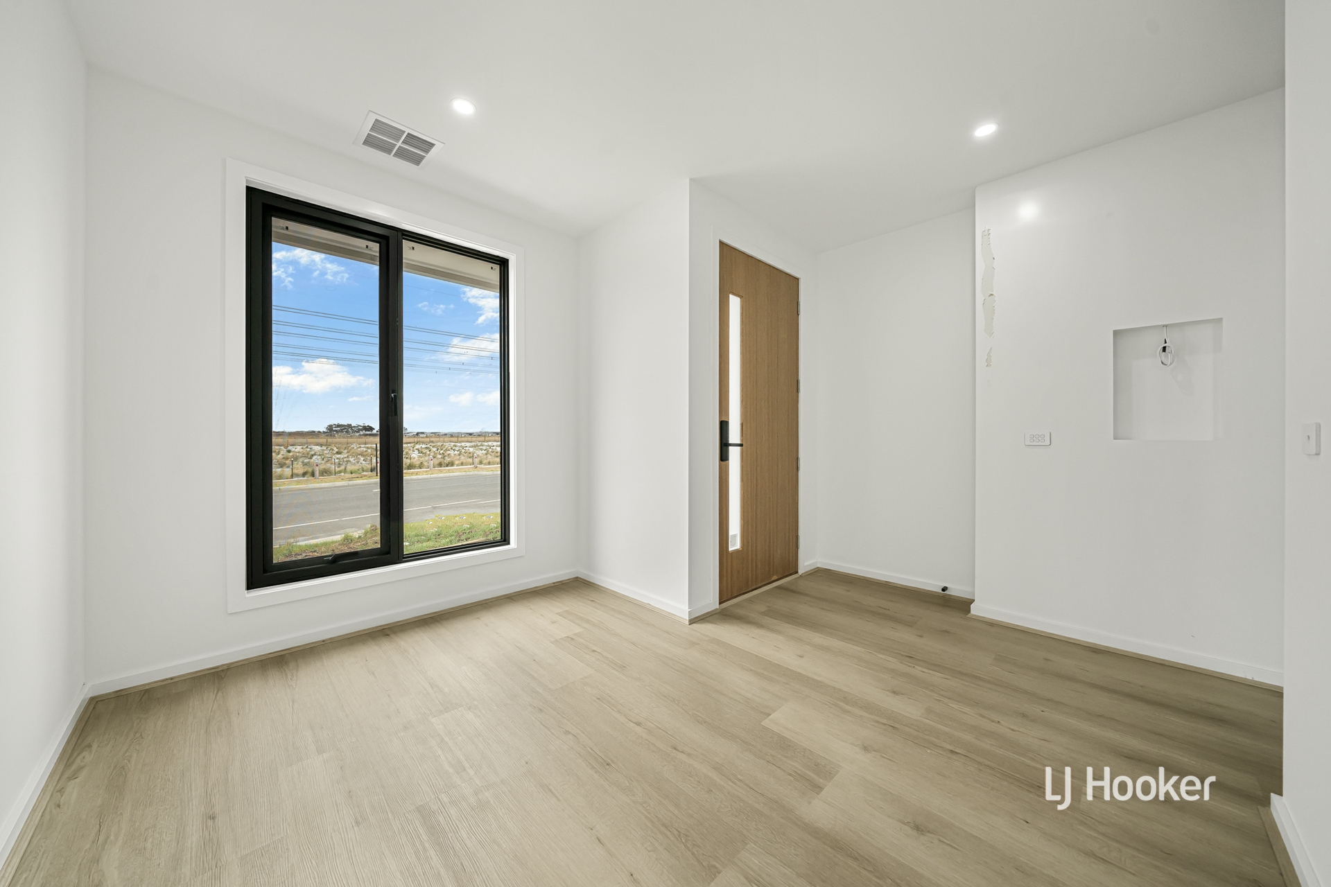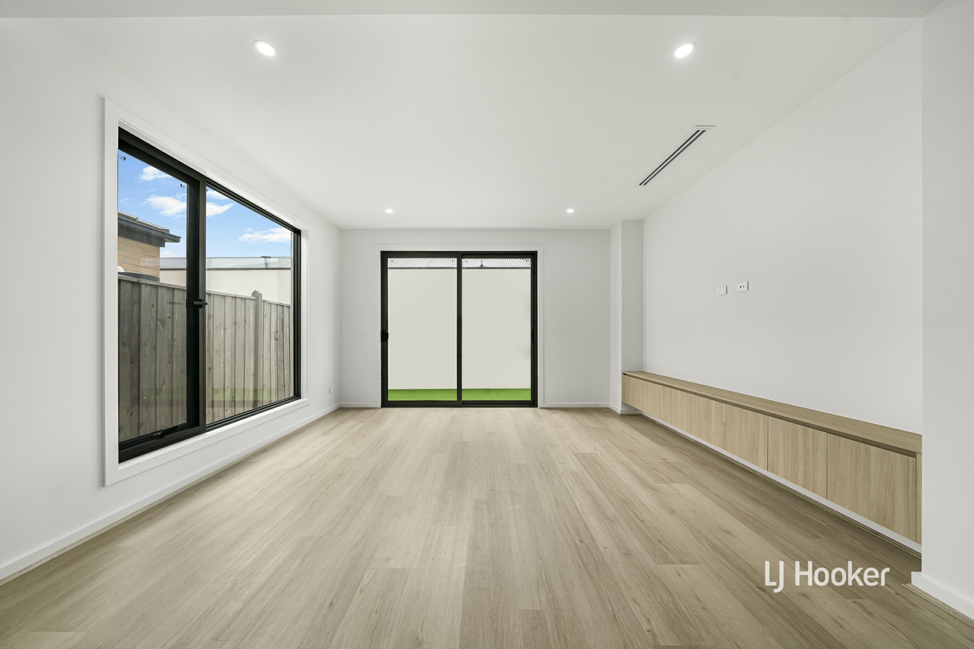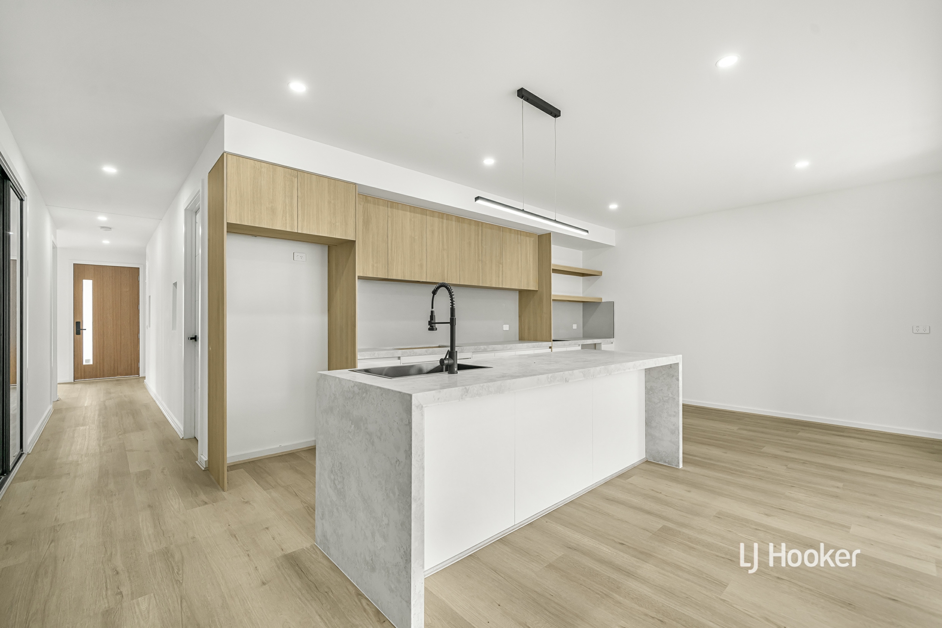 - A striking facade featuring a sleek rendered finish, contemporary parapet wall and rich stained timber entry sets a tone of luxury, flowing into a beautifully executed open plan living and dining zone enhanced by soaring ceilings, rich hybrid flooring, high internal doors and LED downlights that elevate the inviting ambiance.