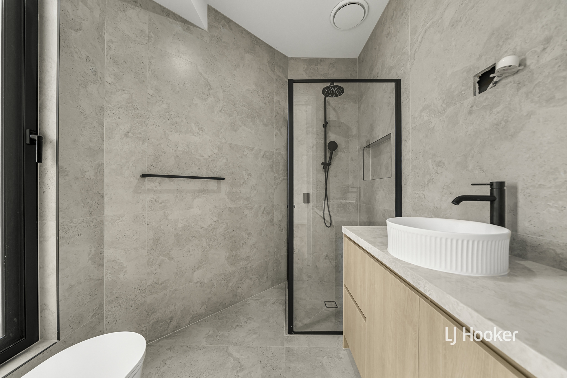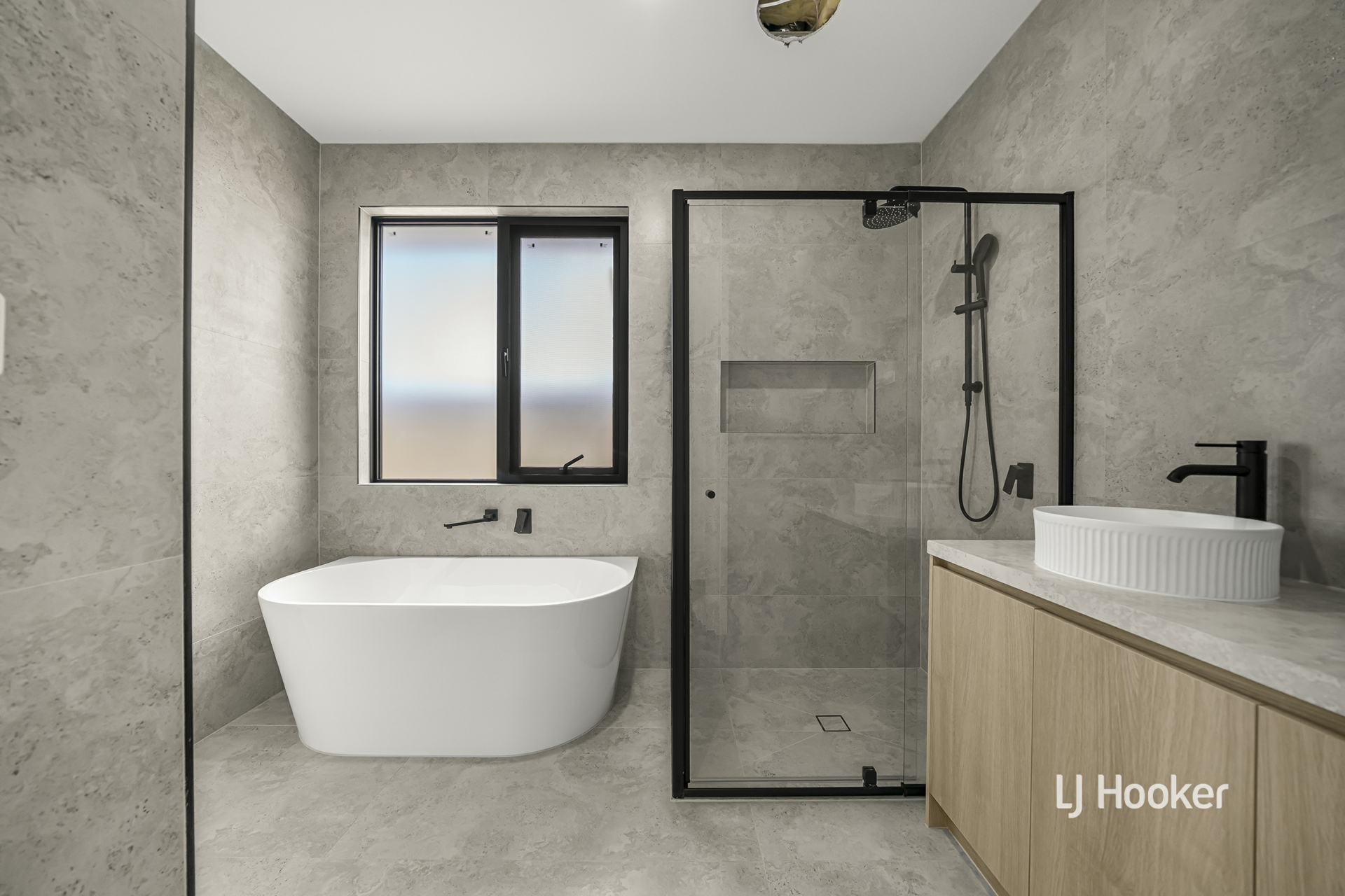 - Comprising four generously sized bedrooms, the home offers exceptional comfort throughout. The main suite provides a private retreat with a spacious walk-in robe and a luxuriously appointed ensuite showcasing a designer vanity, matte-black fixtures and premium shower fittings, while the additional bedrooms include built-in robes and are serviced by a stylish, modern central bathroom.