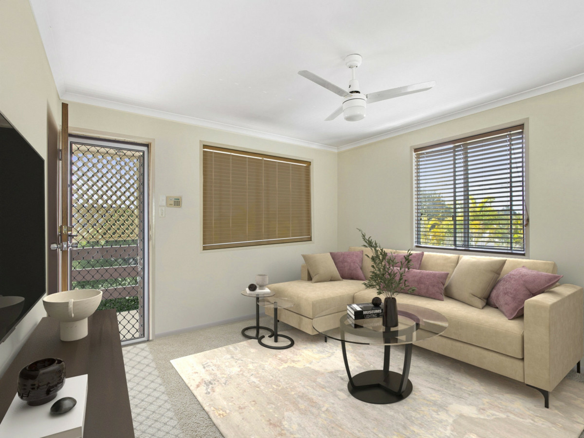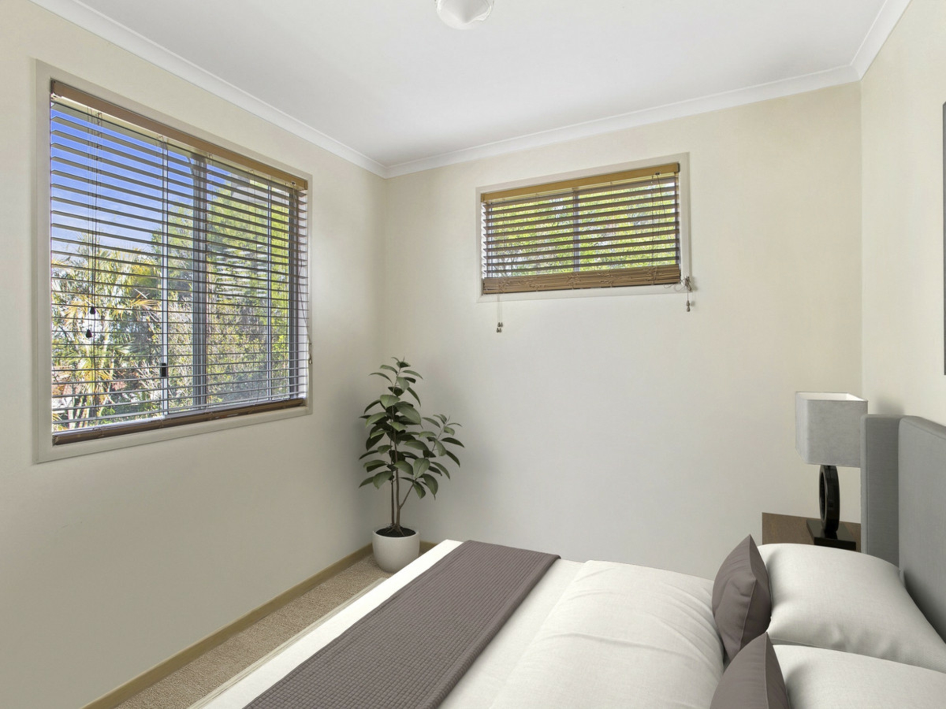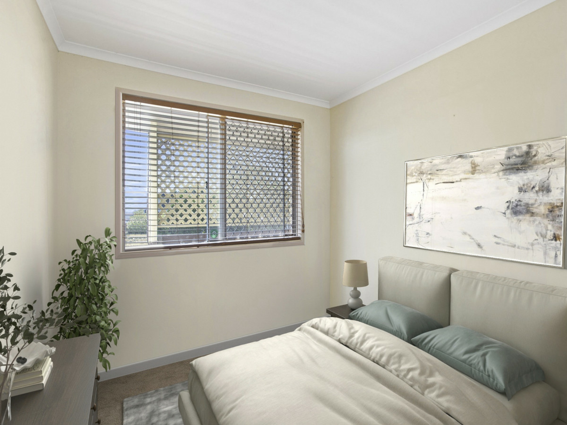 The home features four bedrooms, two complete with built-in robes and ceiling fans. The main bathroom is conveniently located and includes a bathtub, shower, and separate toilet for added practicality.