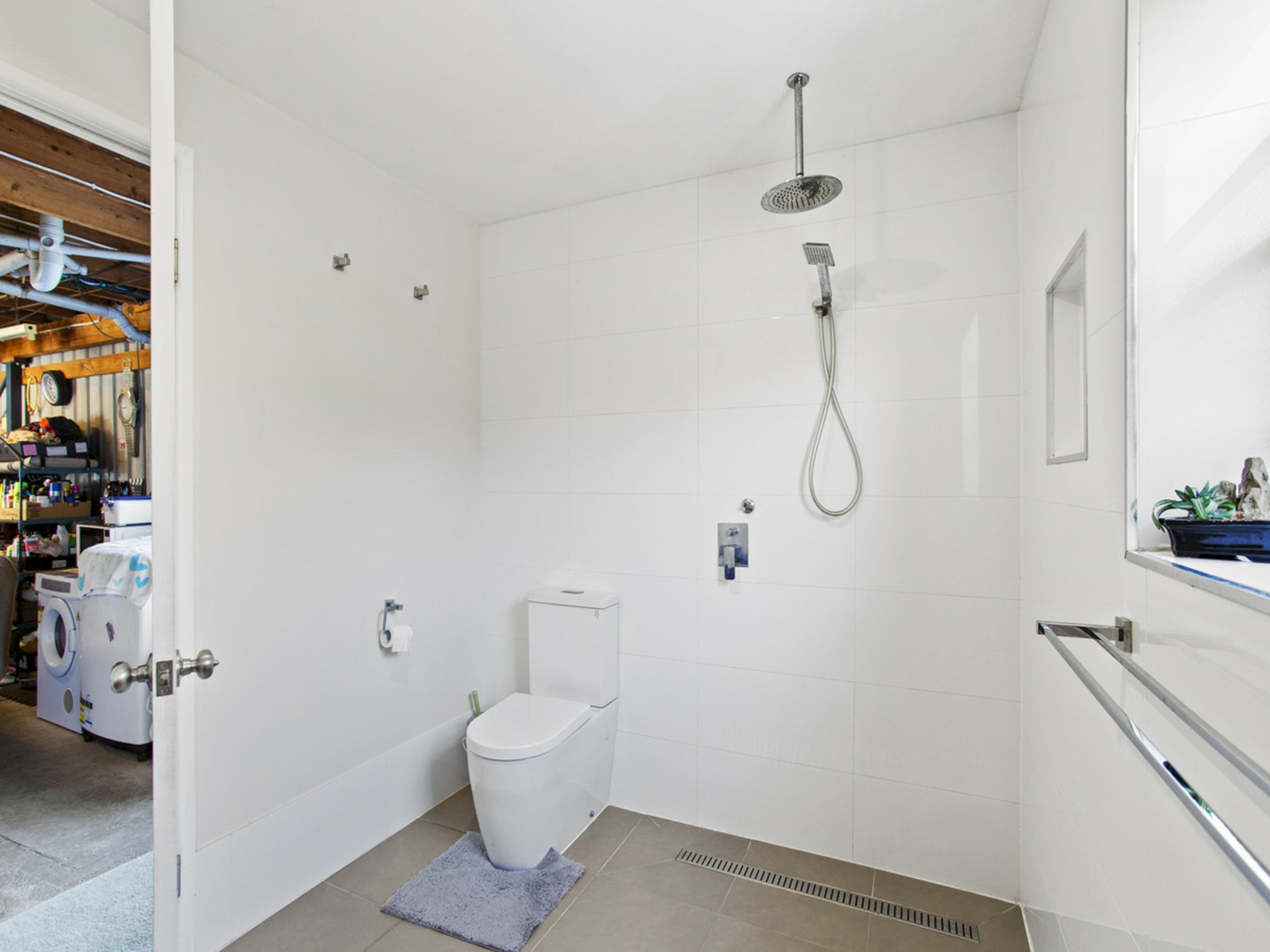 Downstairs offers a flexible space that can easily be transformed into a teenager's retreat, home office, or ultimate man cave. This level is further enhanced by a stylishly renovated bathroom, adding to the home's overall appeal.