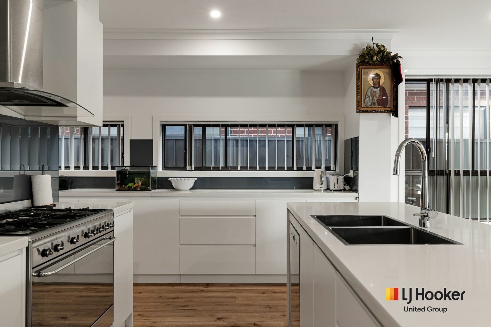 Downstairs, versatility is key, with a flexible floorplan offering the option for a fifth bedroom or a dedicated media room, ideal for guests or additional living space. The heart of the home is the expansive kitchen, finished to a high standard and complete with a large walk-in butler's pantry, ample bench space and quality appliances, all overlooking the open plan living and dining area.