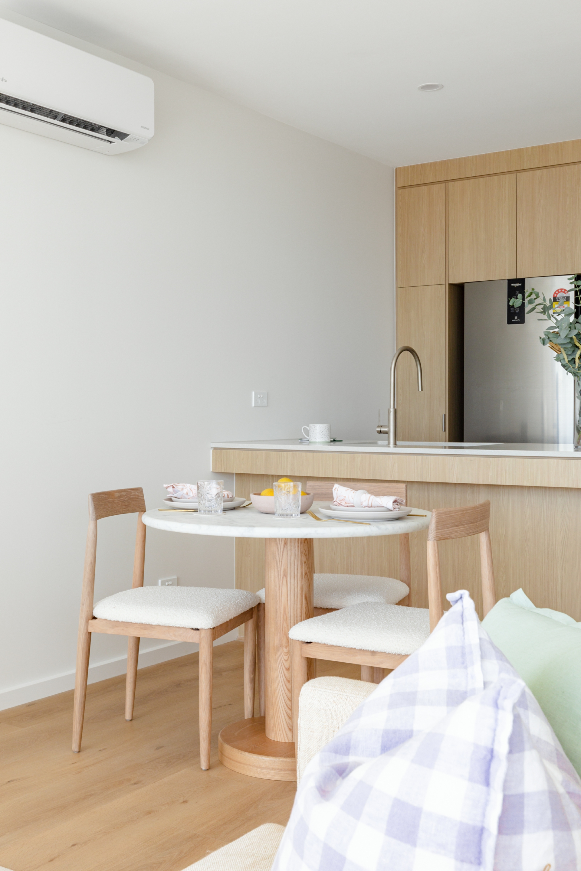 Discover contemporary urban living in Boulevard, Molonglo Valley's newest precinct by renowned local developer Core Developments. This stylish 2-bedroom + study apartment combines mid-century modern design with luxurious finishes, including timber vinyl floors, 100% New Zealand wool carpet, stone benchtops with waterfall edges, soft-close cabinetry, and premium Franke appliances.