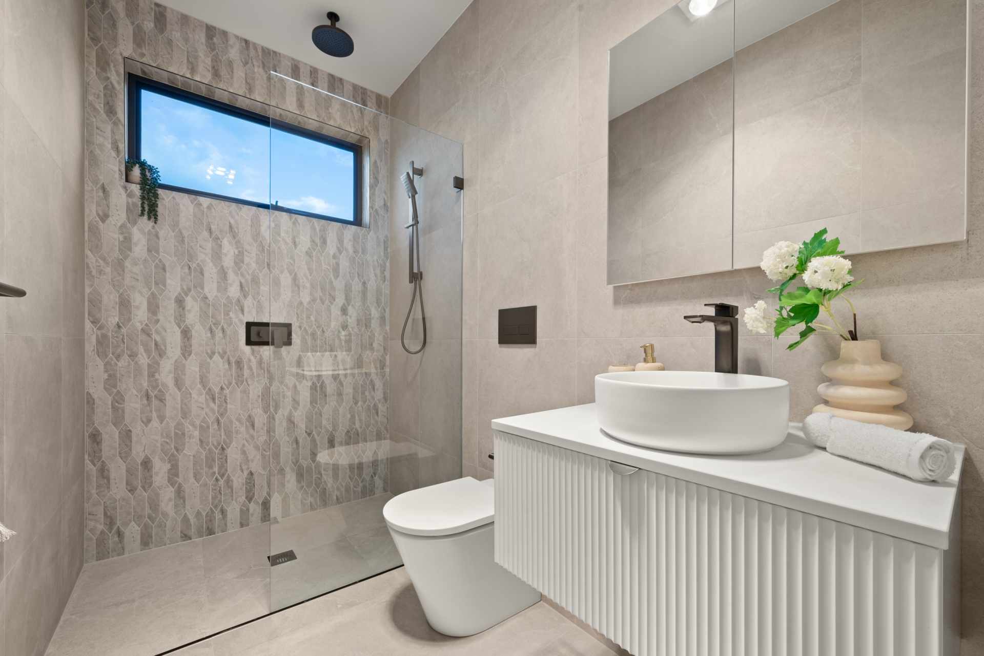 Additional features include ducted reverse-cycle heating and cooling (two zones), floor-to-ceiling tiled bathrooms, a feature 2340mm front door with electric smart lock, three-phase electric hot water, LED lighting throughout, individual meters, lockable street-access gates and individual bins - ensuring both luxury and independence.