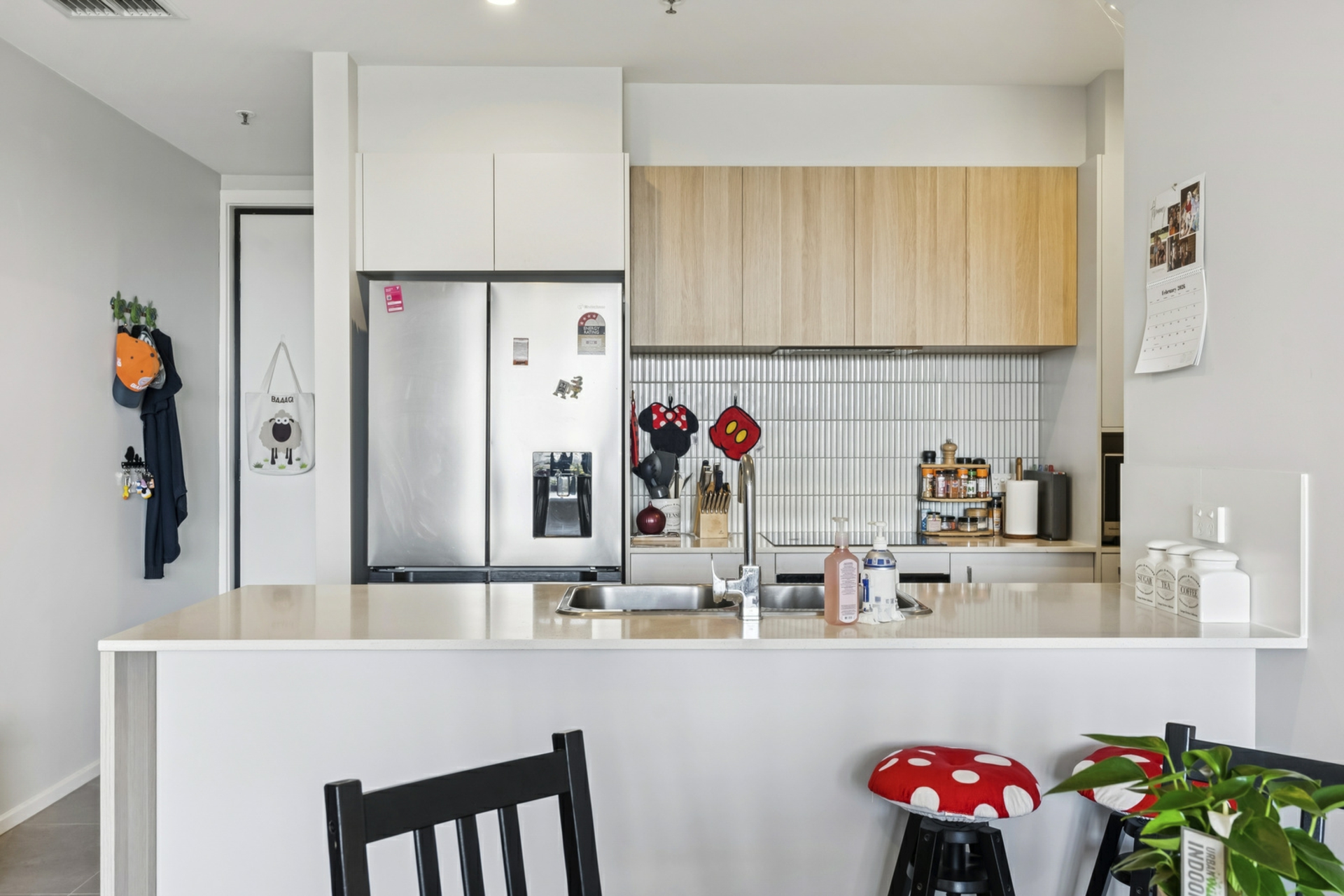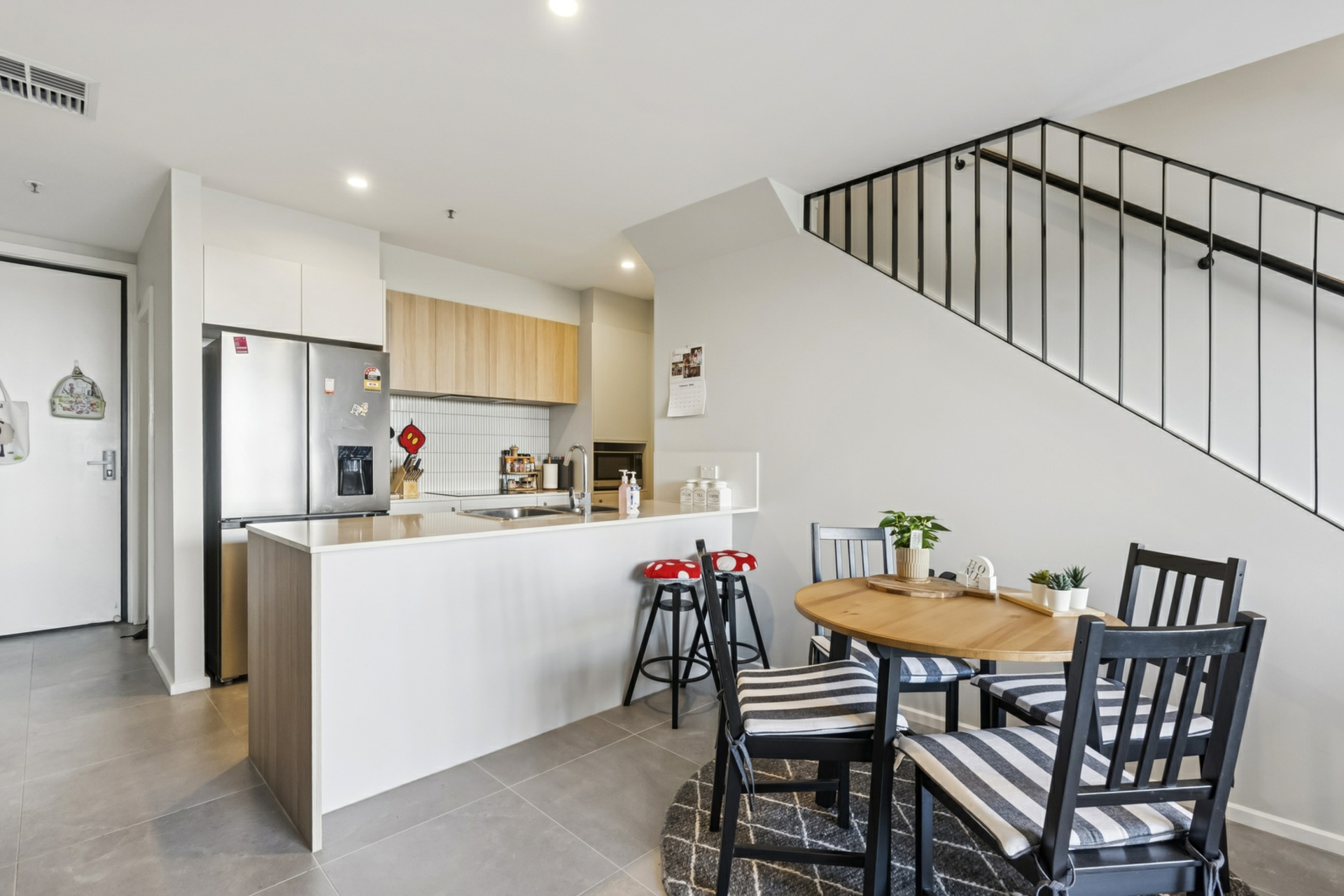 At the heart of the home, open plan living and dining connects effortlessly with a well appointed kitchen featuring induction cooking, quality appliances, and ample storage. Comfort is enhanced by ducted reverse-cycle heating and cooling throughout, while tiled living zones offer durability and low maintenance. Two generously sized bedrooms are complemented by modern bathrooms, and secure garaging adds convenience and peace of mind.