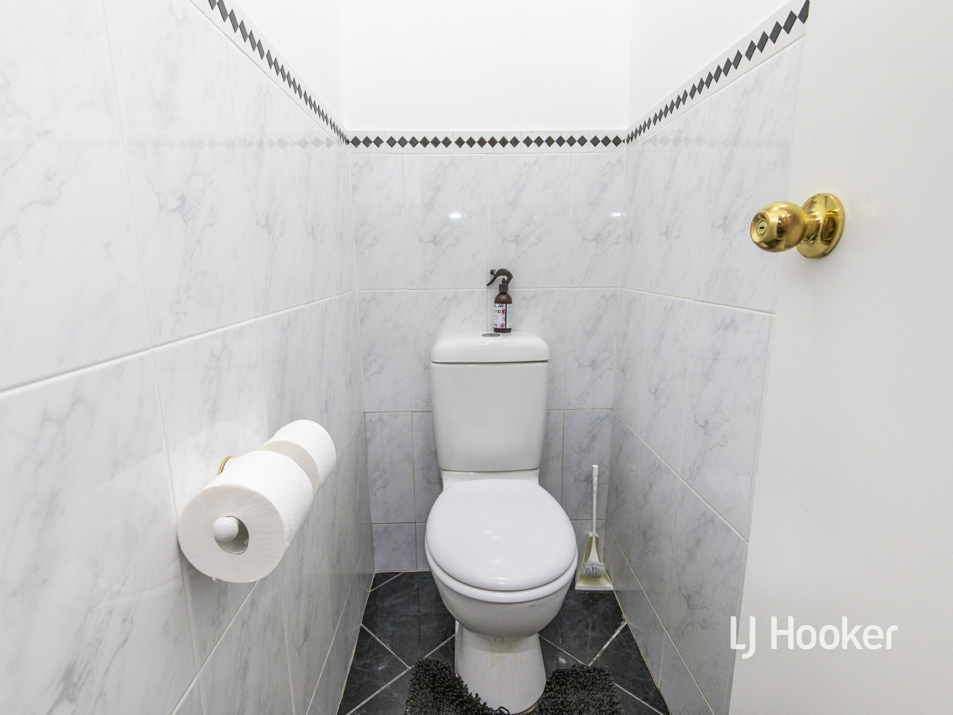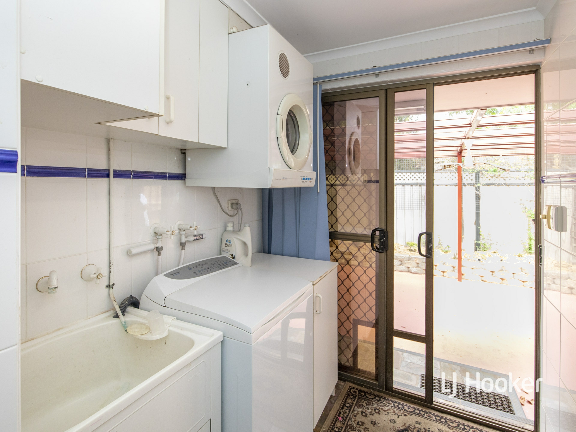 Even the laundry has had a makeover with full wall tiling and overhead cabinetry.