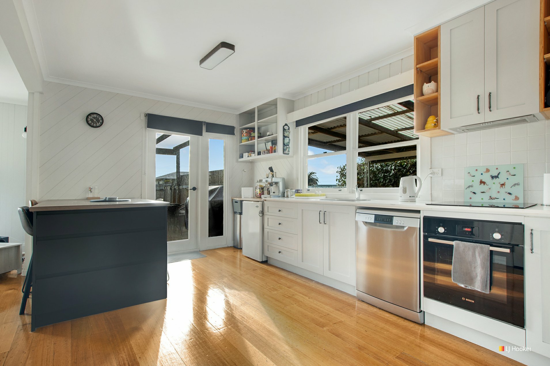 Built in 1952 this home has been transported into the modern era with a renovation completed in 2019. This home delights with its gorgeous style and excellent layout. The kitchen is bright and spacious and includes a dishwasher and more recently a new oven. There is a large pantry and a built-in dining table or extra bench space incorporated into the kitchen. The entertainment deck sits in a convenient position straight out from the kitchen area and is the perfect spot to keep the BBQ ready to go. Stunning Tasmanian Oak polished floorboards are a feature in the living area, and you will find quality carpets in the 3 bedrooms. All bedrooms are of a generous size and while not built-ins, the property does have wardrobes included for each bedroom. The main bathroom is superb with stylish tiles under foot, a bath tub, hand basin and the main shower. There is a heated towel rail and a huge storage area for your linen in this space as well. A very clever use of space sees a second bathroom that combines with the laundry. There is also a carport, a garden shed, the fences are in good condition and there is a reverse cycle air conditioner to keep you cosy and warm. This home is a comfortable option for those that are first home buyers, downsizers or investors. The land size is 386m2, so big enough for space but small enough for minimal work and there is a good area at the front for gardening or growing your own vegetables.