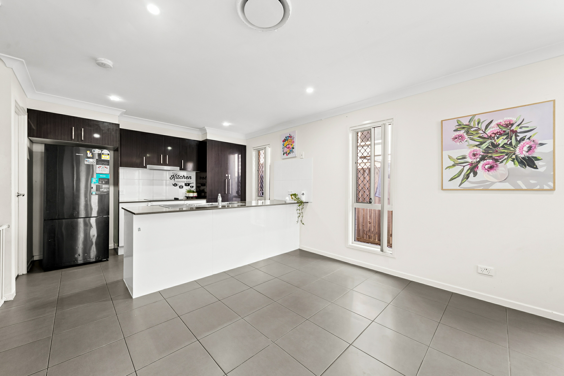 Designed for easy living, the home features a spacious open-plan living and dining area with tiled flooring and ducted air conditioning throughout, creating a light-filled and welcoming space for everyday living and entertaining. The modern kitchen is perfectly positioned at the heart of the home and offers quality appliances, ample cupboard space and a practical layout to suit busy lifestyles.