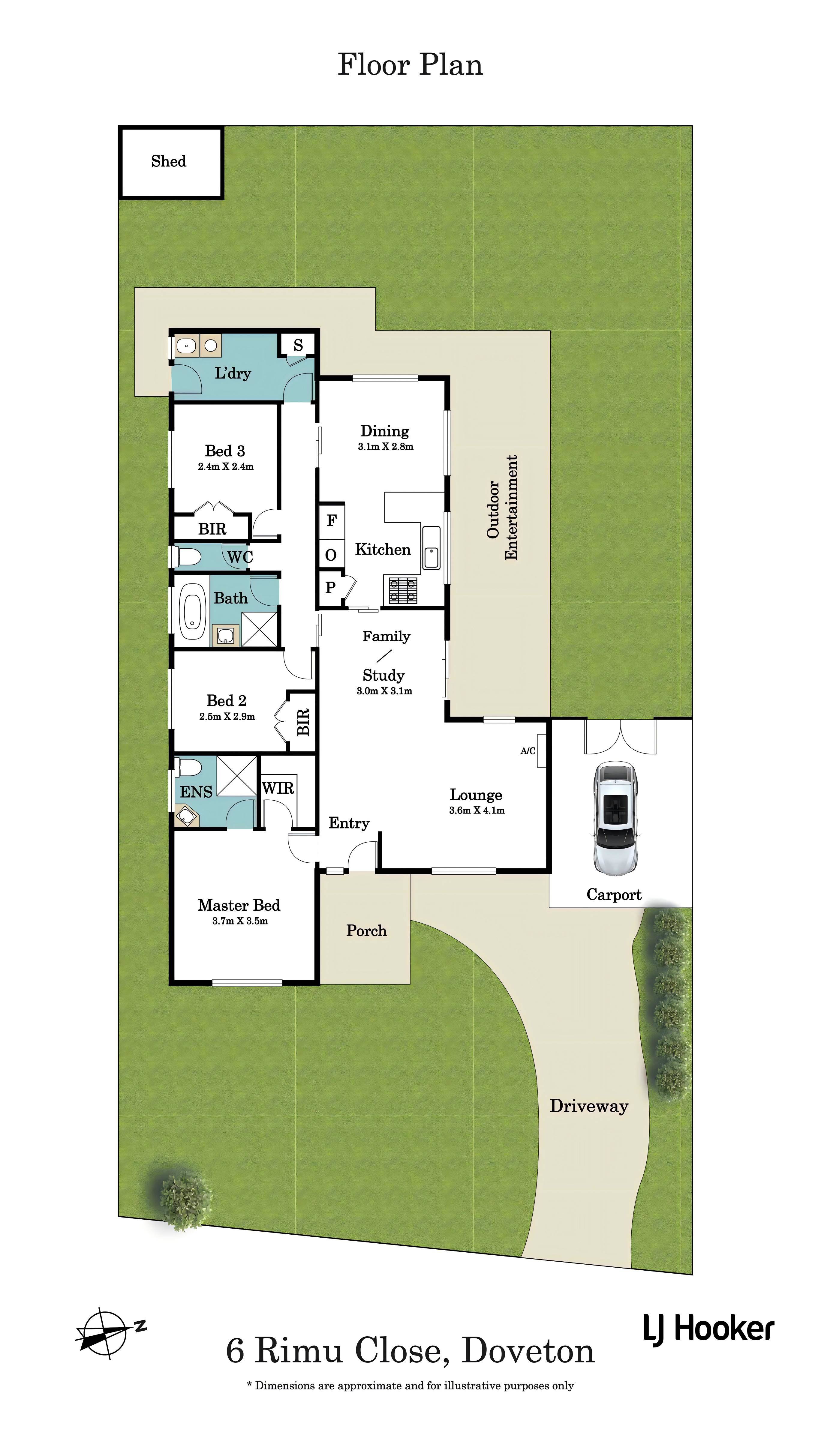 Accommodation comprises three bedrooms, including a privately zoned master suite with walk-in robe and ensuite, while bedrooms two and three feature built-in robes and share a central bathroom and separate toilet.