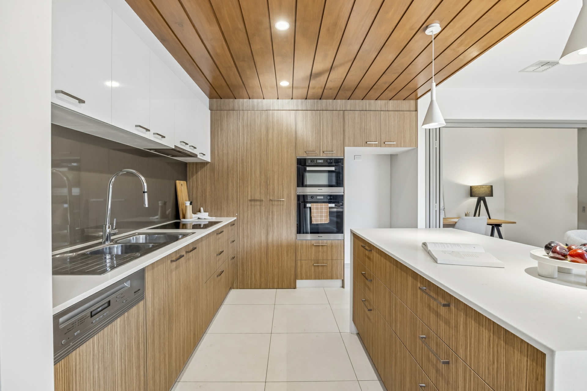 The well-appointed kitchen serves as the heart of the home, featuring gas cooking, ample bench space, and excellent storage. It connects seamlessly to the open plan living and dining area, making it perfect for both everyday living and entertaining with ease.