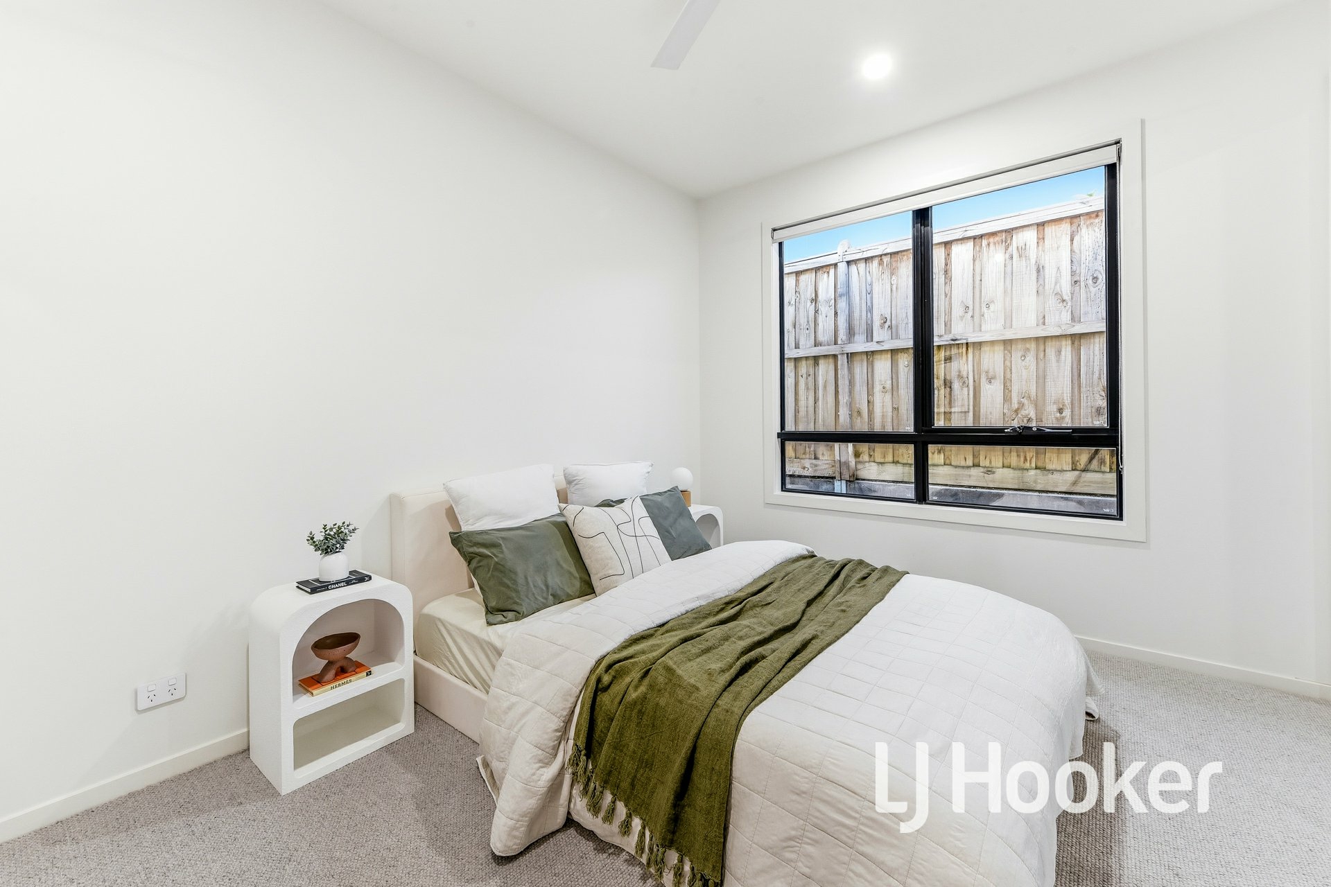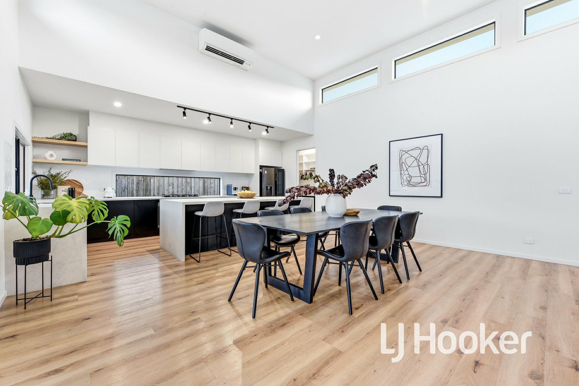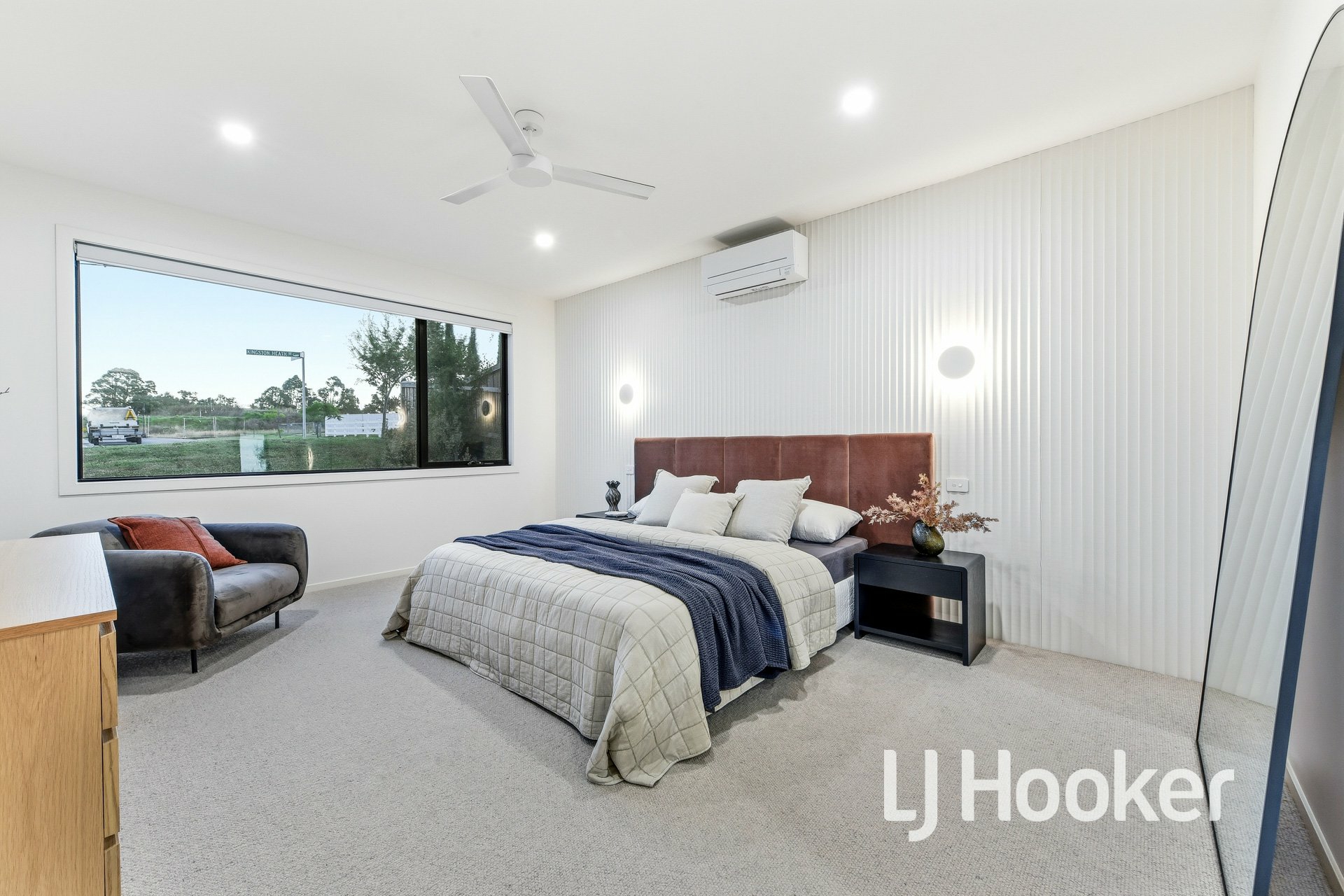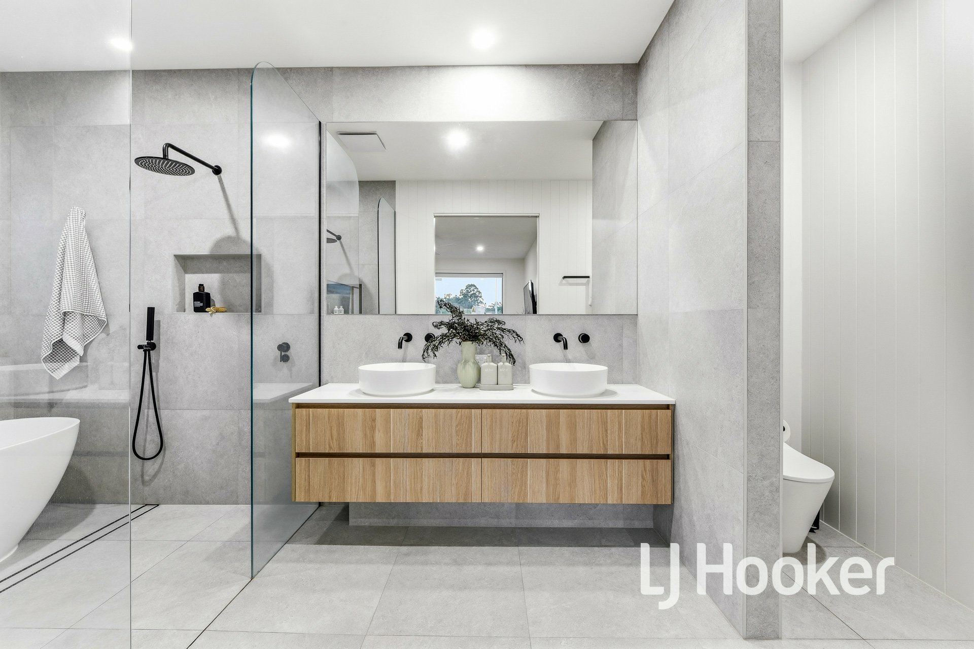 Stepping in you'll be immediately taken by the quality floating floors the hallway offers, a front formal living room allows for quiet enjoyment. The sprawling primary retreat offers a stunning feature wall, split system heating/cooling, ceiling fan, ensuite and walk in robe. The ensuite features a practical modern design with a stone benchtop, double basin, double shower with niches, bath, and toilet. An oversized walk-in robe is perfect for large scale storage.