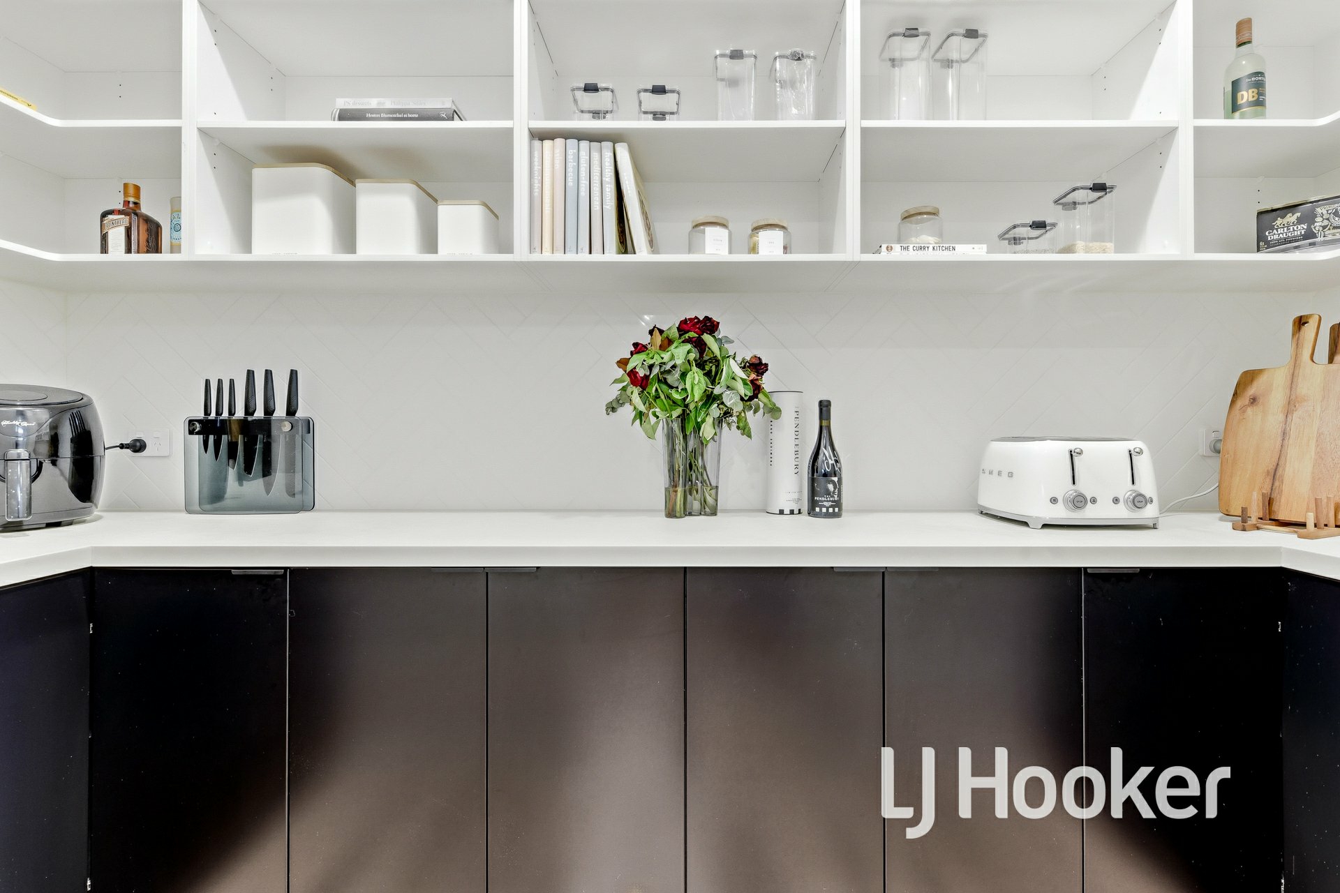 The hub of the home is the kitchen, dining, living area – where no expense has been spared, and the chef of the family will immediately fall in love with the abundance of under bench storage and overhead cupboard space. Appointed with stunning stone benchtops and stainless-steel appliances including under bench oven, cooktop, rangehood, and dishwasher. The walk-in pantry is perfect for food preparation, with further overhead and under bench storage available.