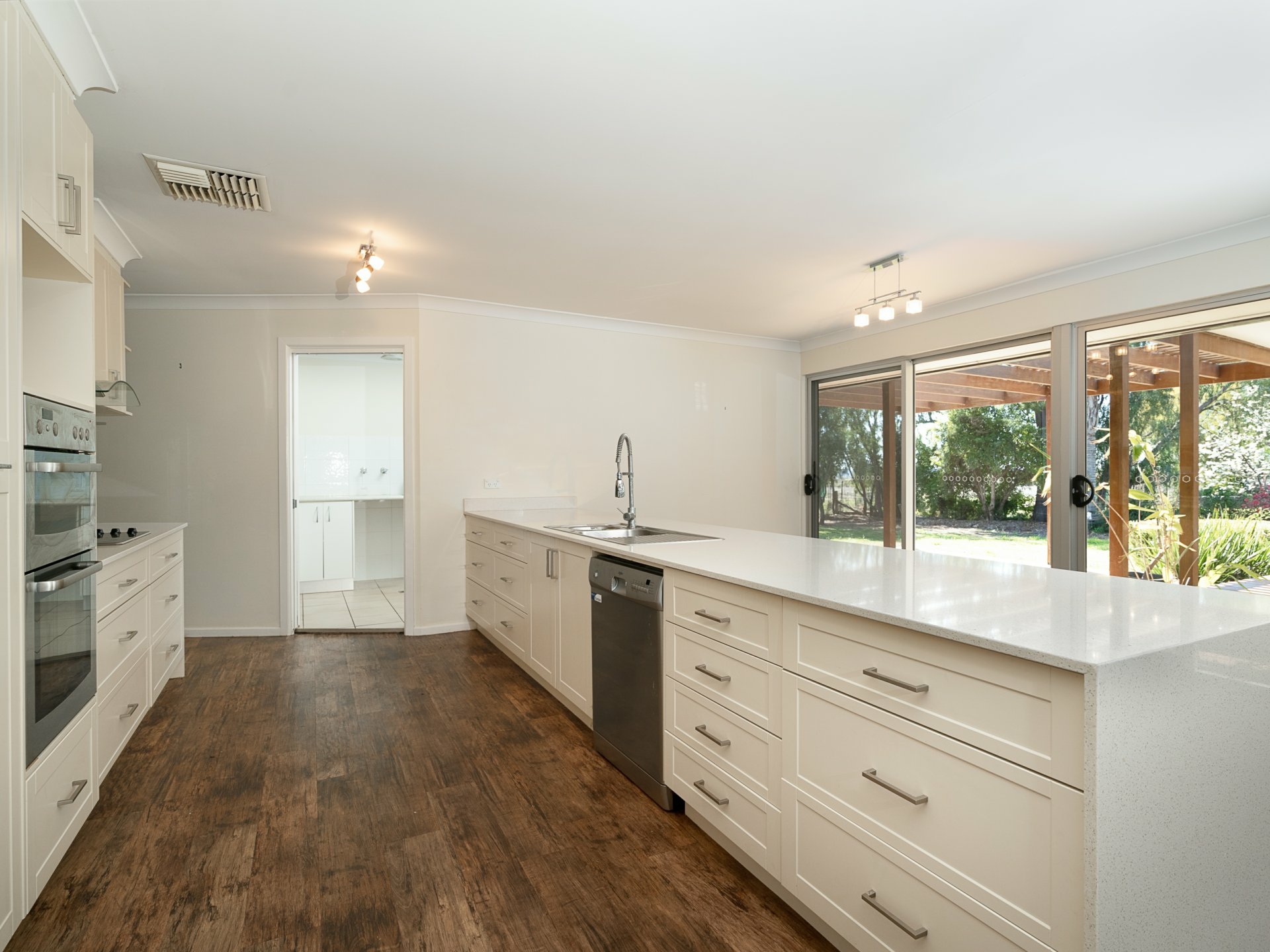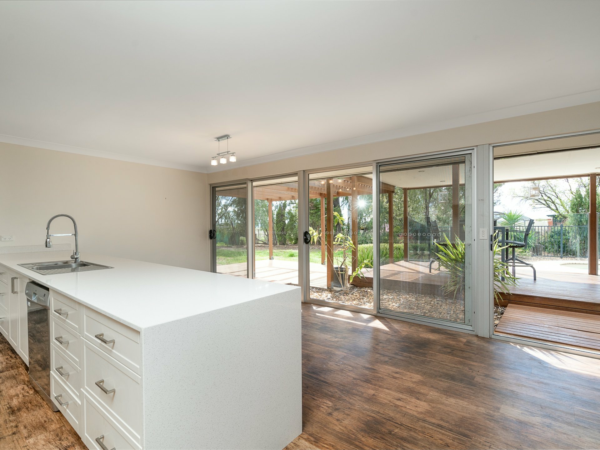 Large entertainers kitchen overlooking entertaining area and in-ground fully fenced pool