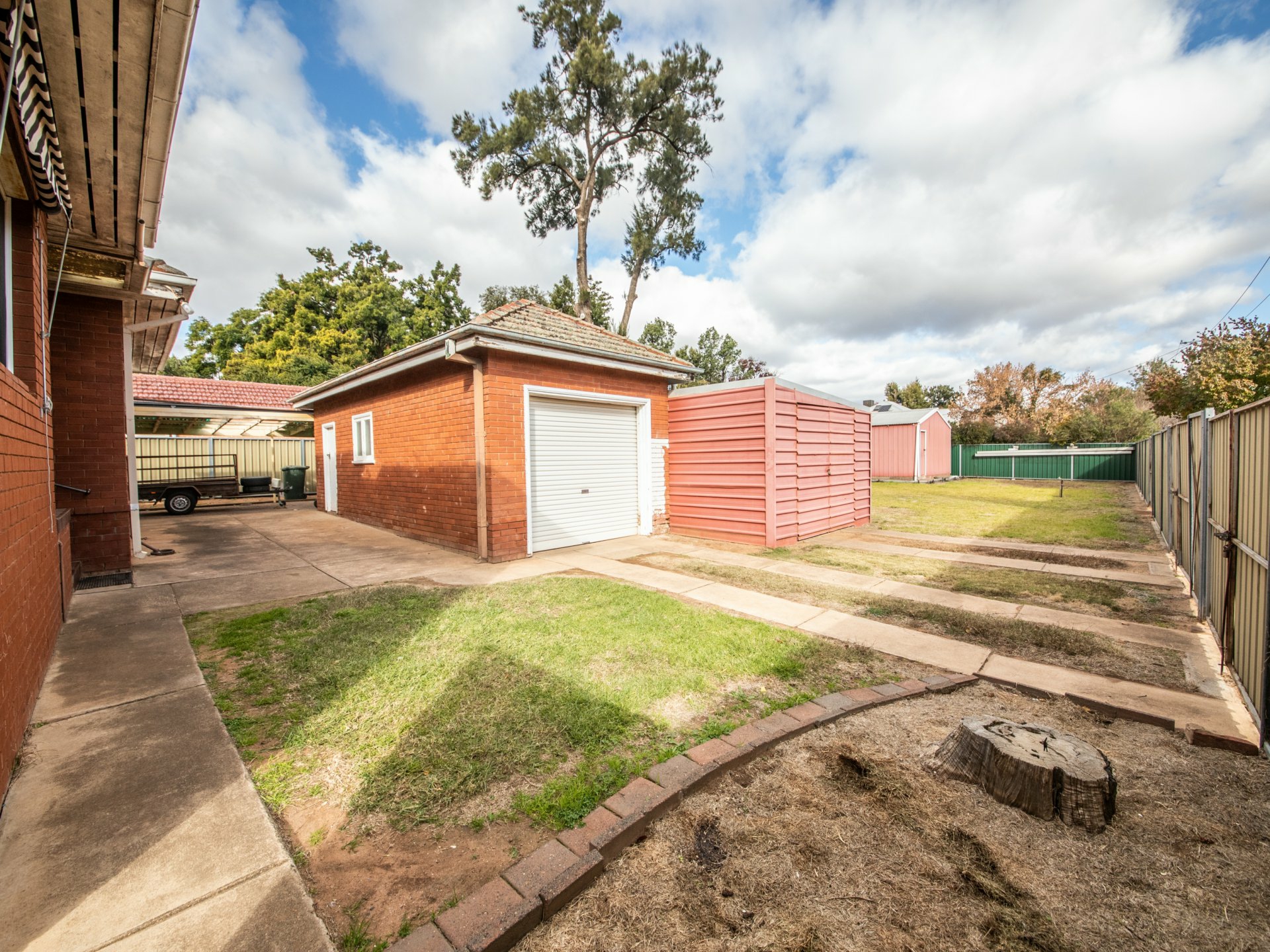 Features: Four Bedroom brick residence, with two bathrooms (requiring substantial maintenance/repair), single lockup garage with attached pergola and shed/workshop plus large steel frame shed.