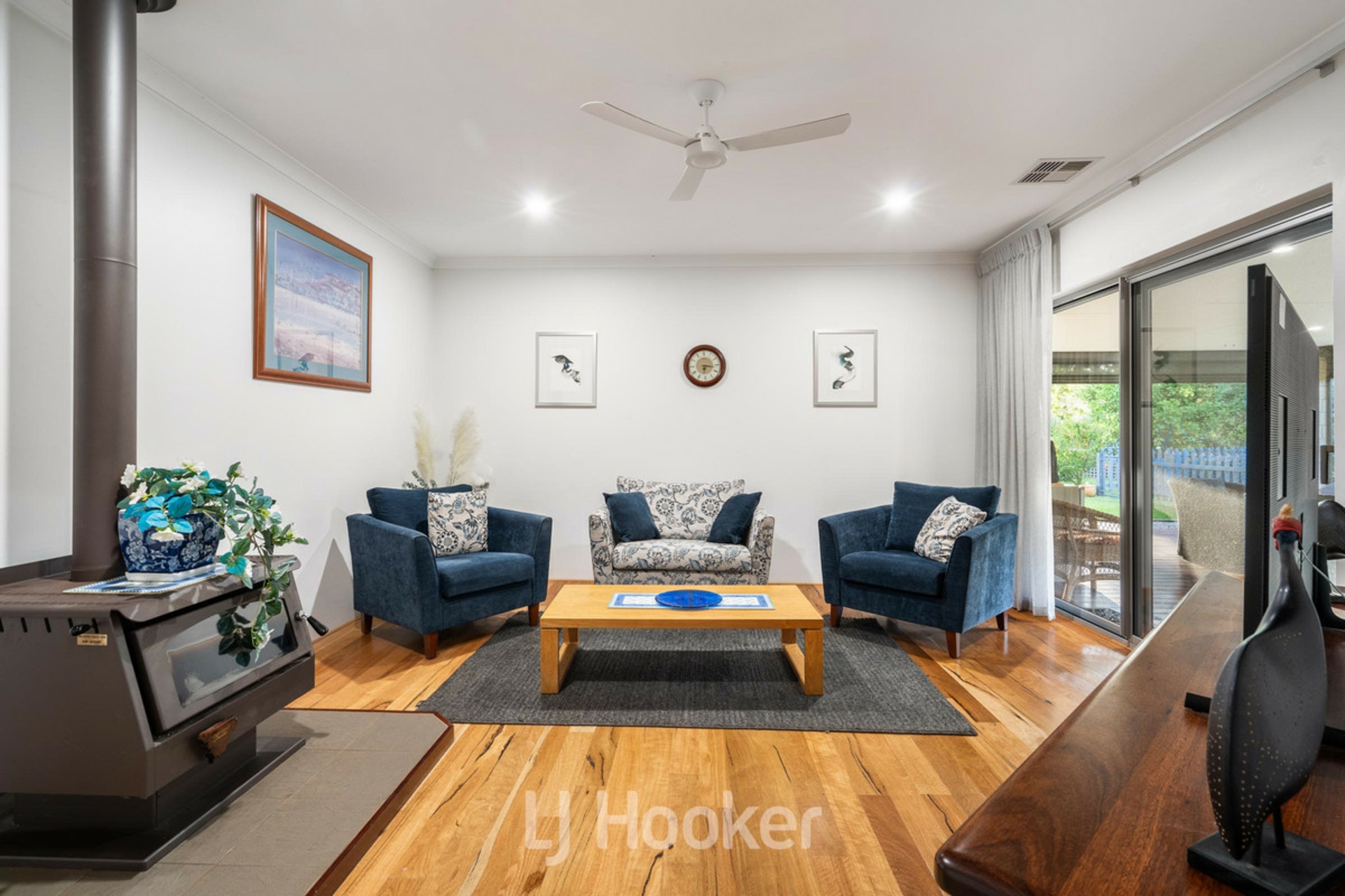A striking wood fireplace adds warmth and ambience during the cooler months, with reverse-cycle air conditioning throughout ensuring effortless climate control across every season. Adding to the home's efficiency and long-term appeal, solar panels and a solar hot water system further enhance its sustainability credentials.