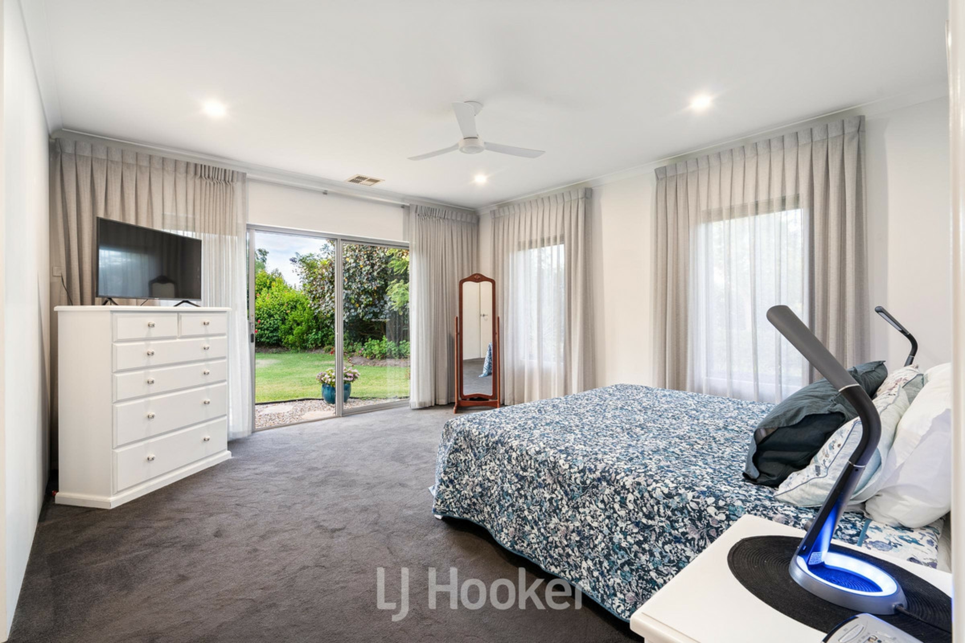 Outdoors, the residence truly comes into its own. The expansive alfresco entertaining area, complete with privacy blinds, overlooks beautifully established gardens that cocoon the home in greenery and seclusion. Fully reticulated by a bore that feeds into the water tank, the grounds are both lush and practical. A substantial shed adds further functionality, while the home enjoys a serene outlook backing directly onto farmland, enhancing the sense of openness and exclusivity.