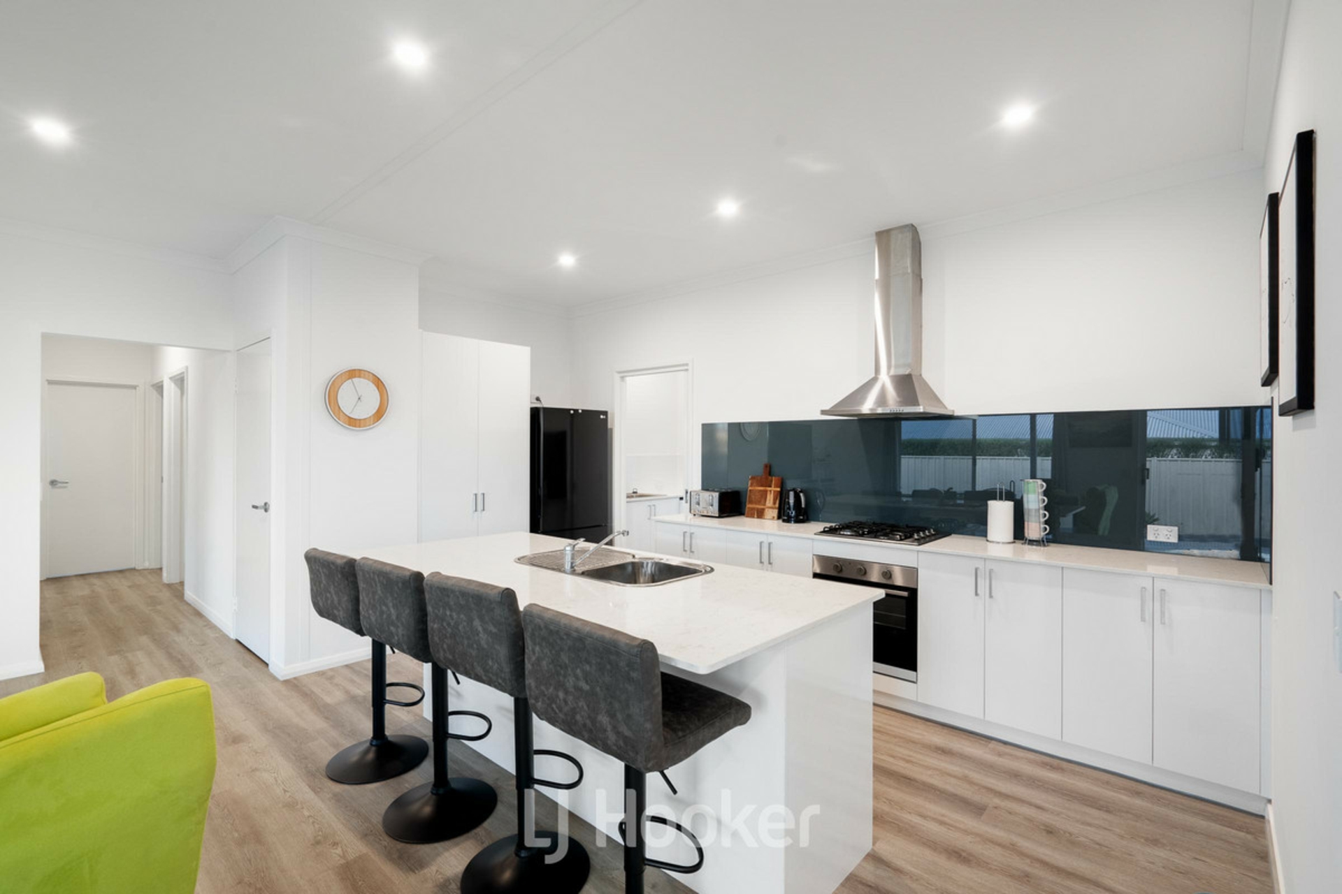 Inside, the home features light-filled open plan living, enhanced by timber look flooring throughout the living areas and bedrooms, delivering both style and durability. The well designed kitchen includes a gas cooktop, electric oven, island breakfast bar and storage - ideal for everyday living and entertaining. Reverse cycle air conditioning ensures comfort year round.