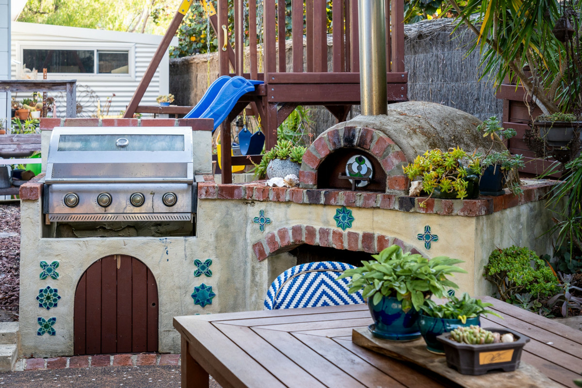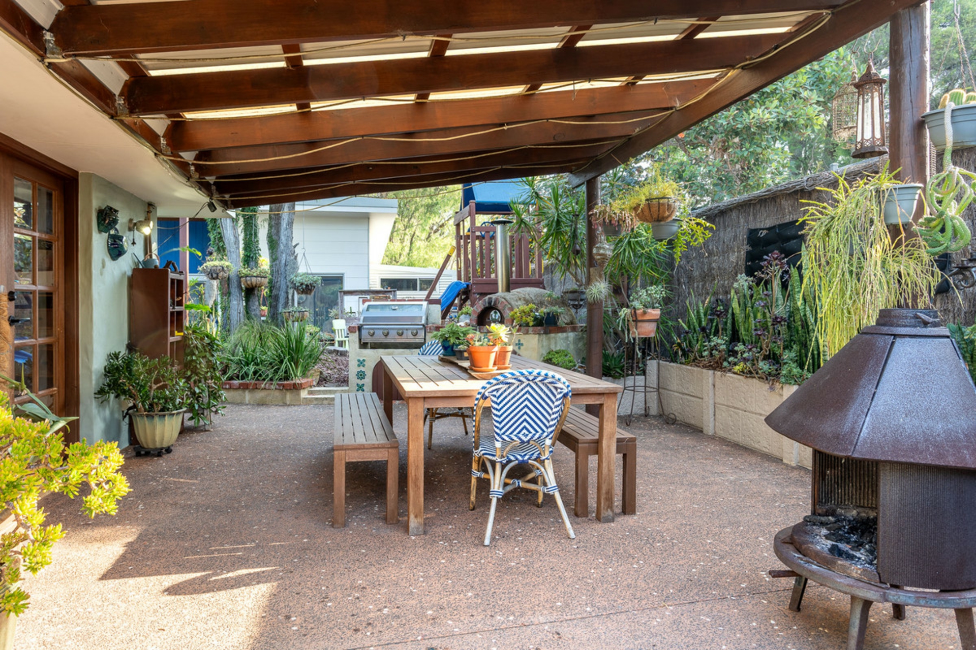 Outdoors, the property truly comes to life with multiple entertaining spaces, including a pizza oven, built in BBQ, and a private courtyard designed for relaxed gatherings. The fully brushwood fenced grounds provide a secure and spacious setting, complemented by a children's play area, established fruit trees and a thriving vegetable garden.