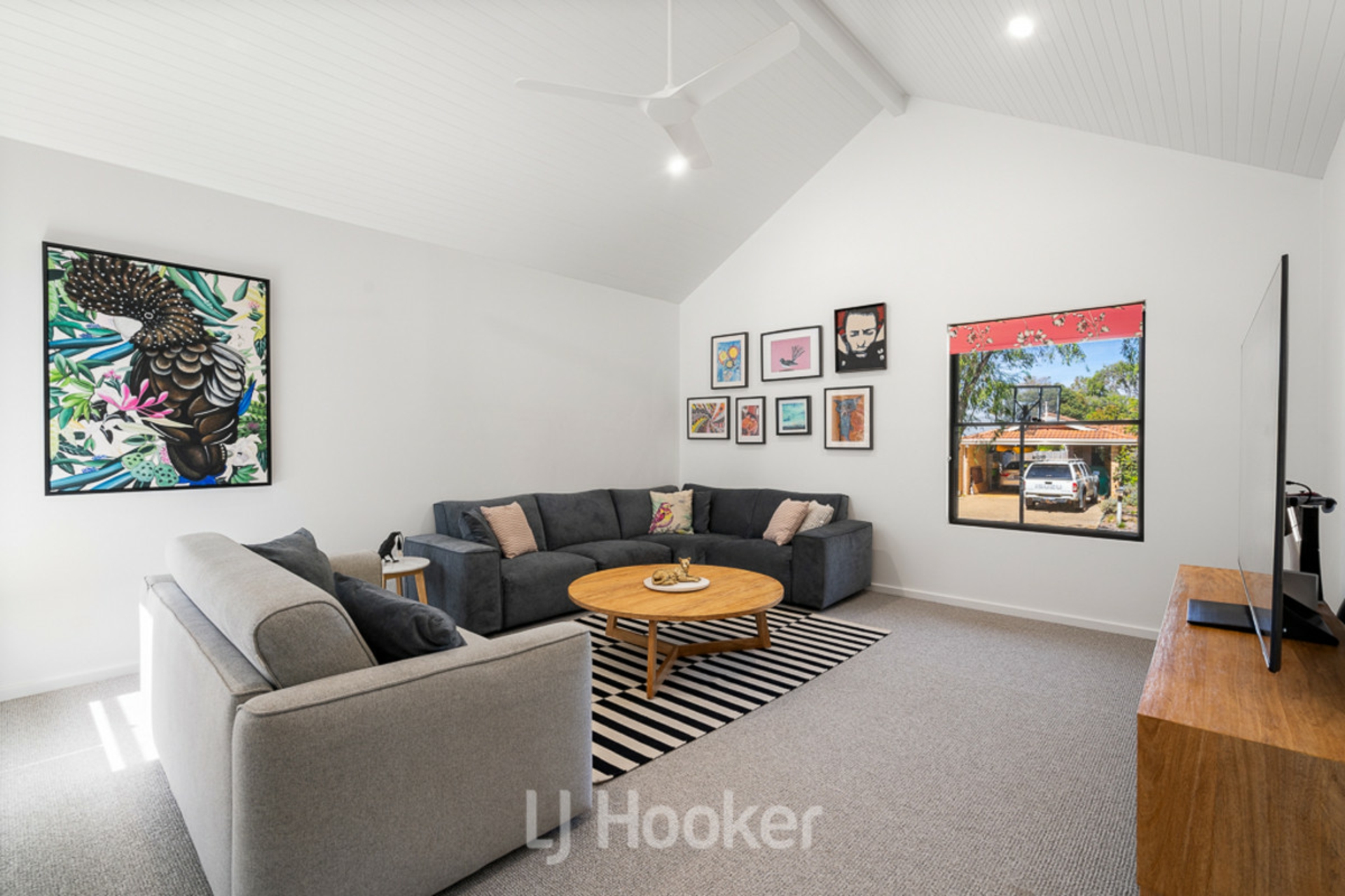 •Second living area with striking high timber-lined ceiling