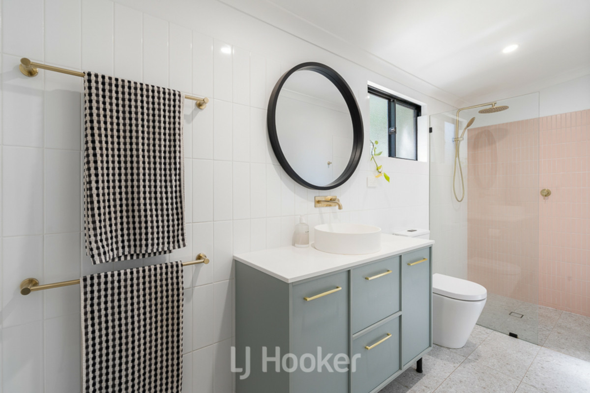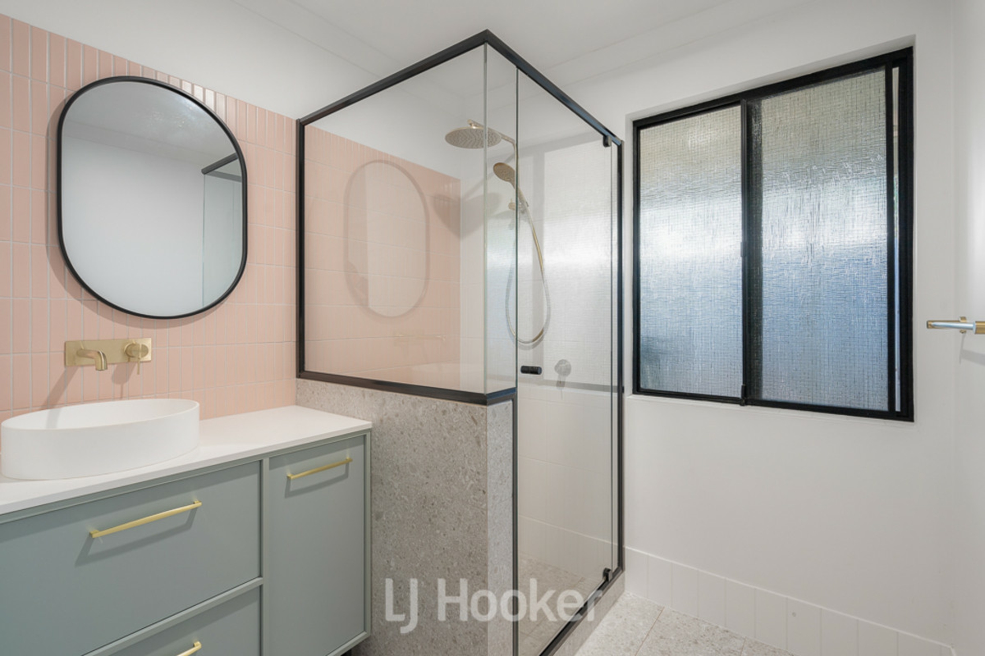 •Stylish main bathroom with quality cabinetry & glass shower