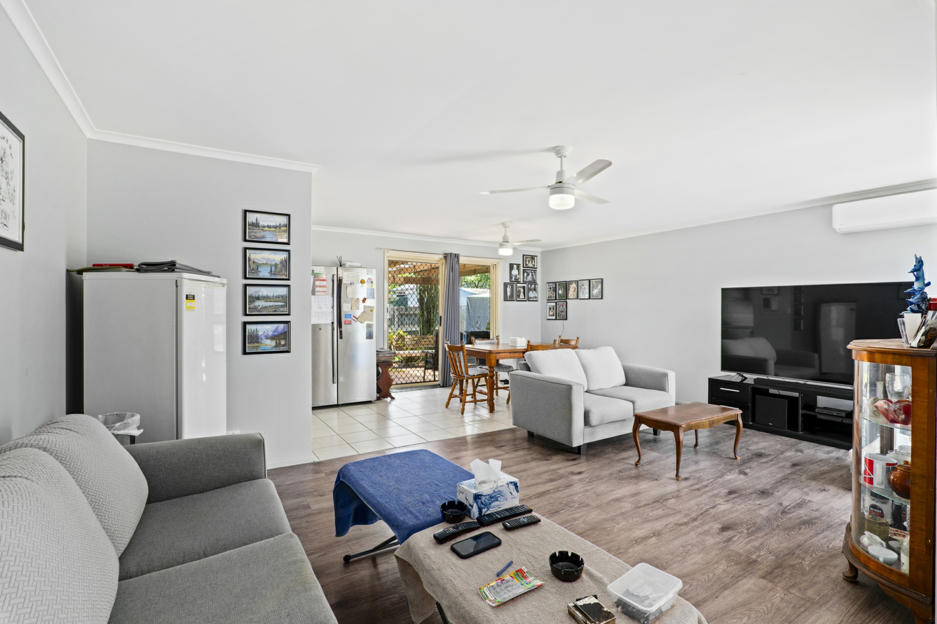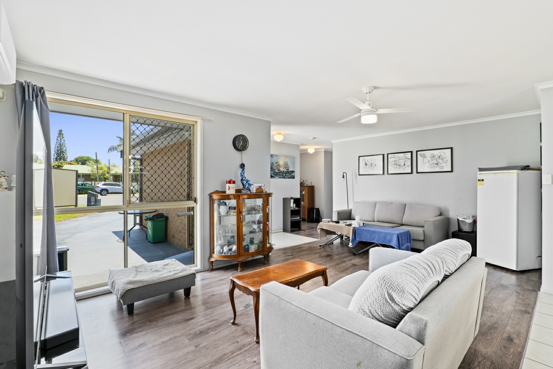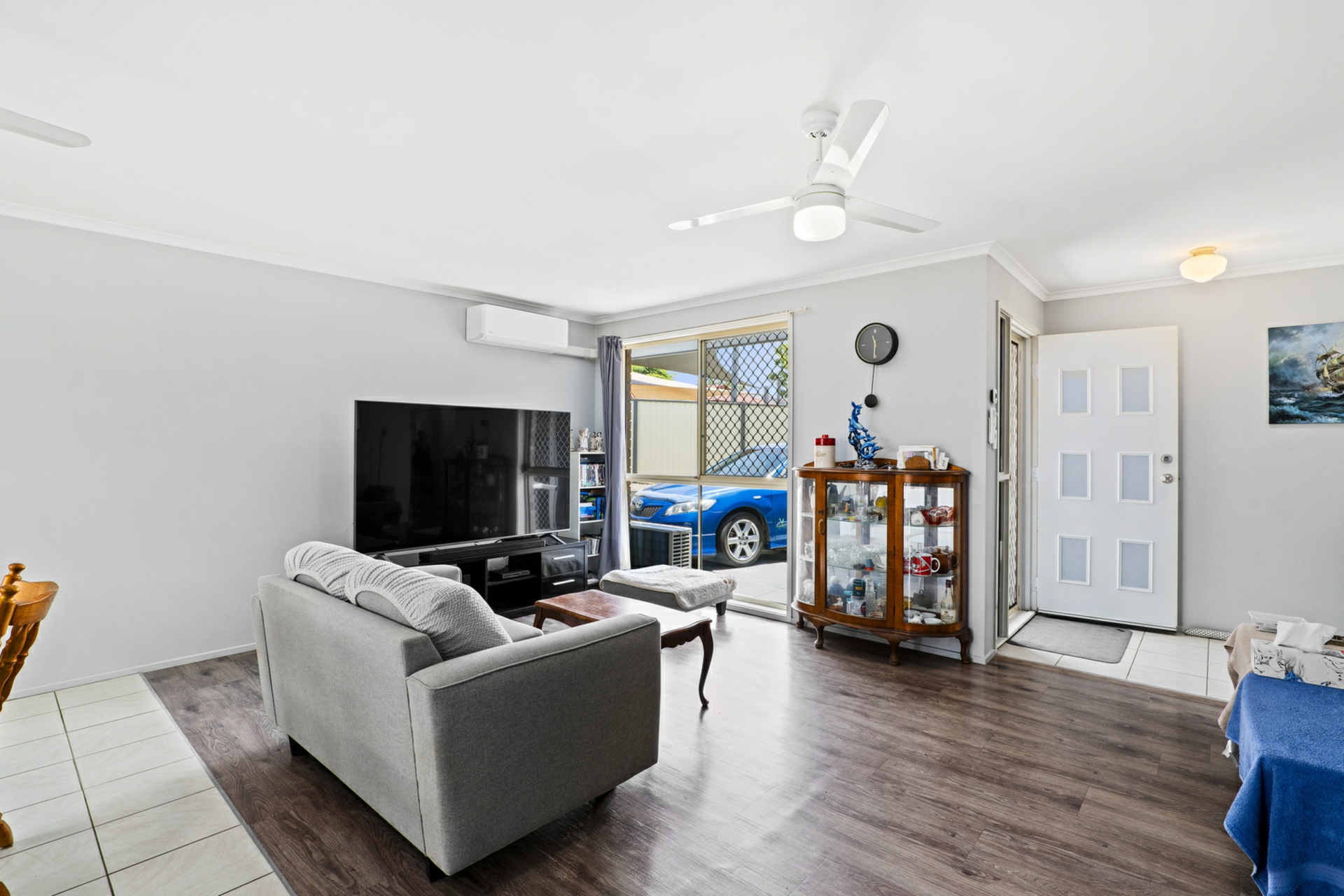 • Bright & Airy Living Area: The spacious lounge is complemented by laminate timber flooring, neutral tones, and a split-system air conditioner for year-round comfort.