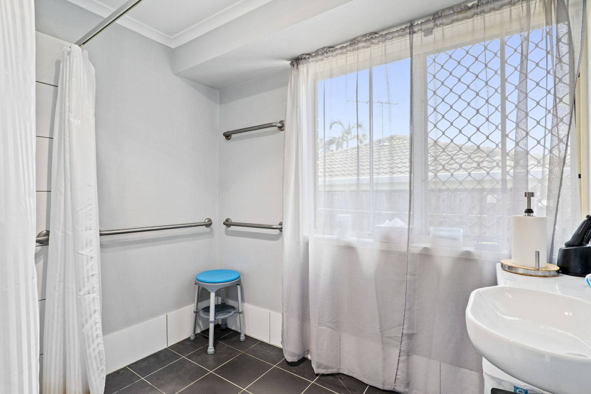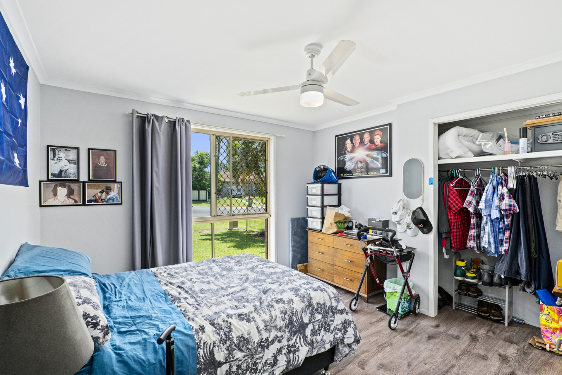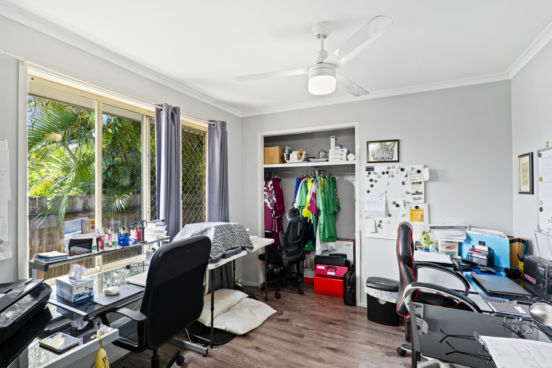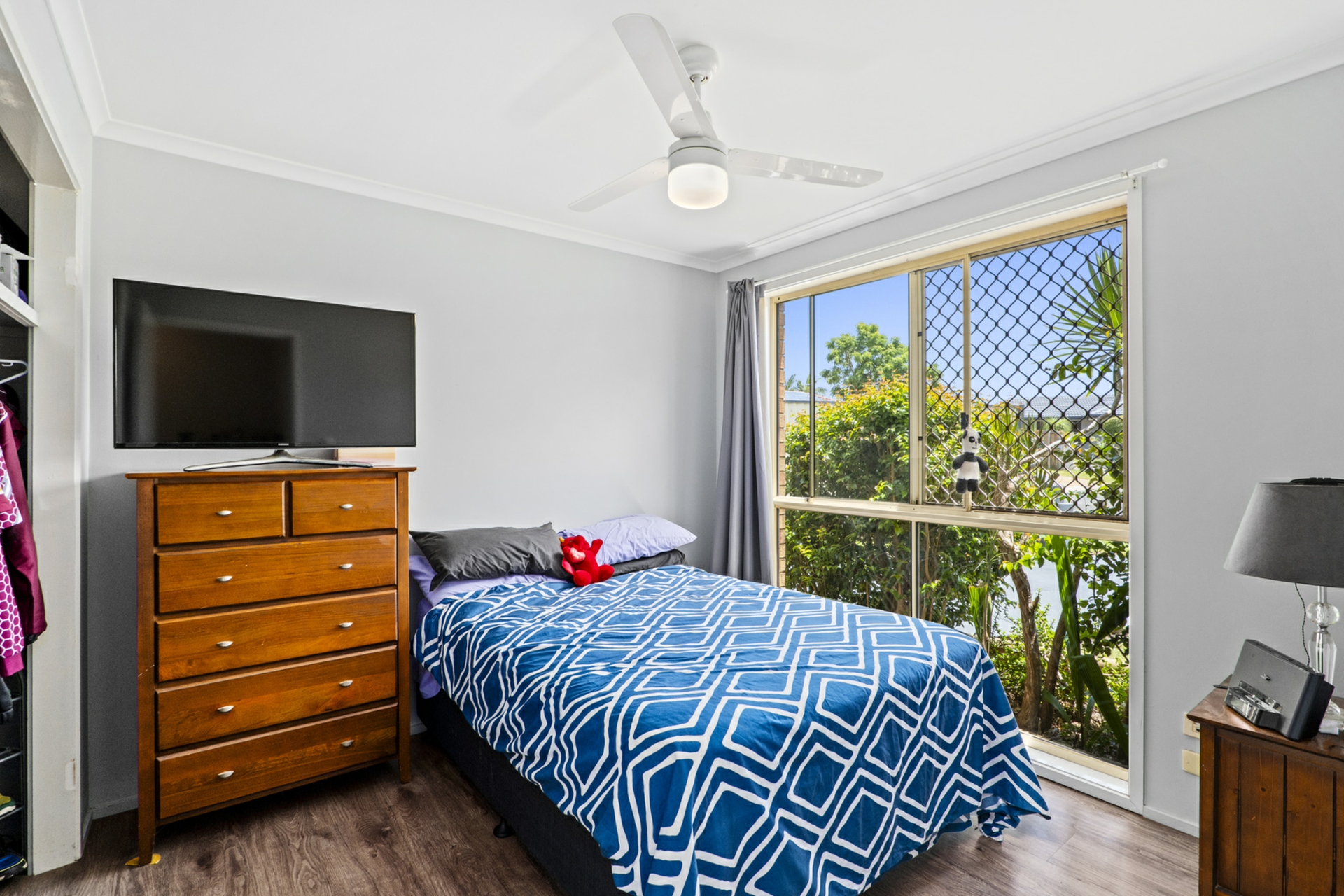 • Three Generous Bedrooms: Each bedroom is bright, with large windows and ceiling fans for comfort, including a built-in wardrobe in the master.