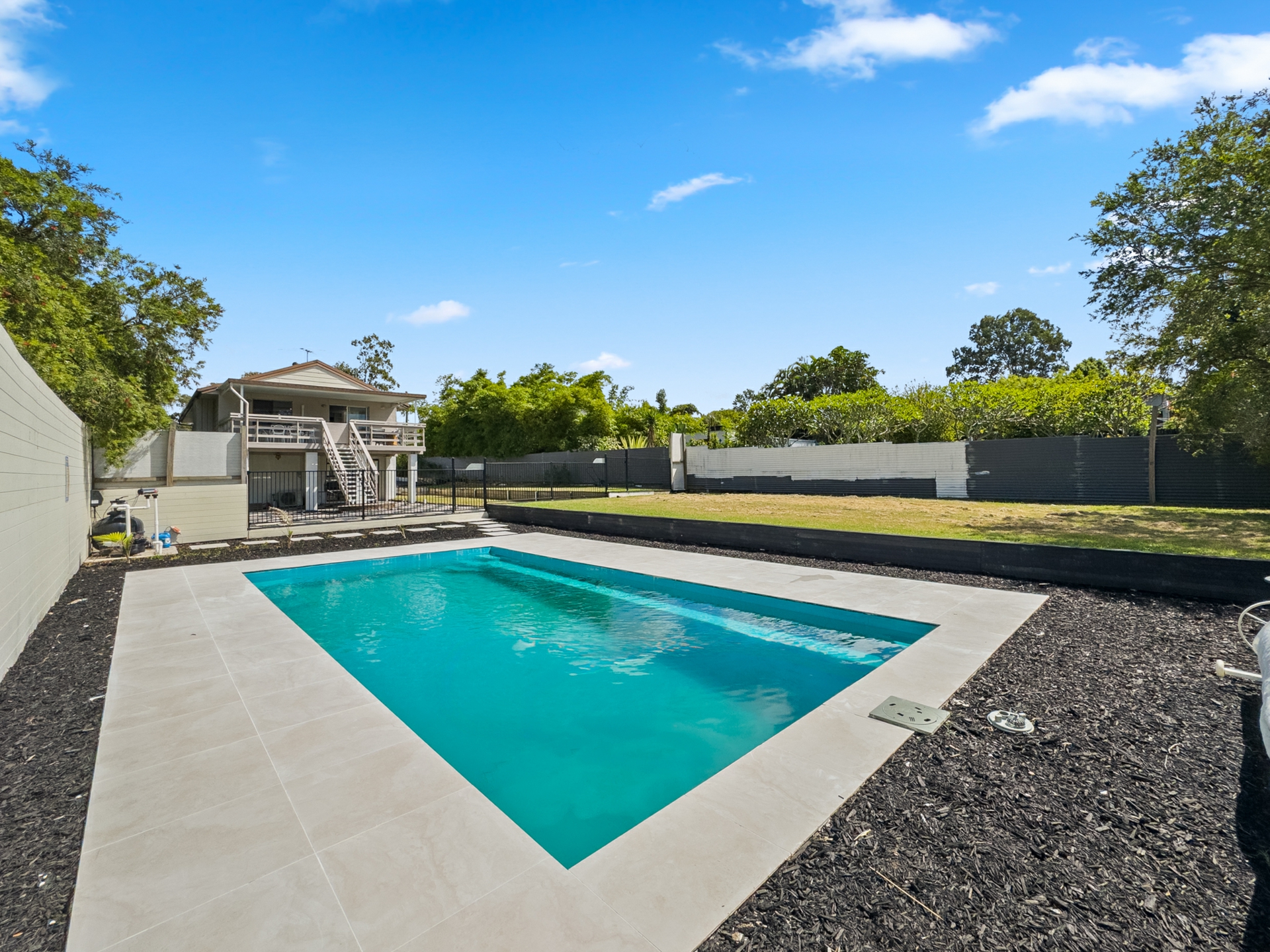 • Large backyard offering space, privacy, and flexibility