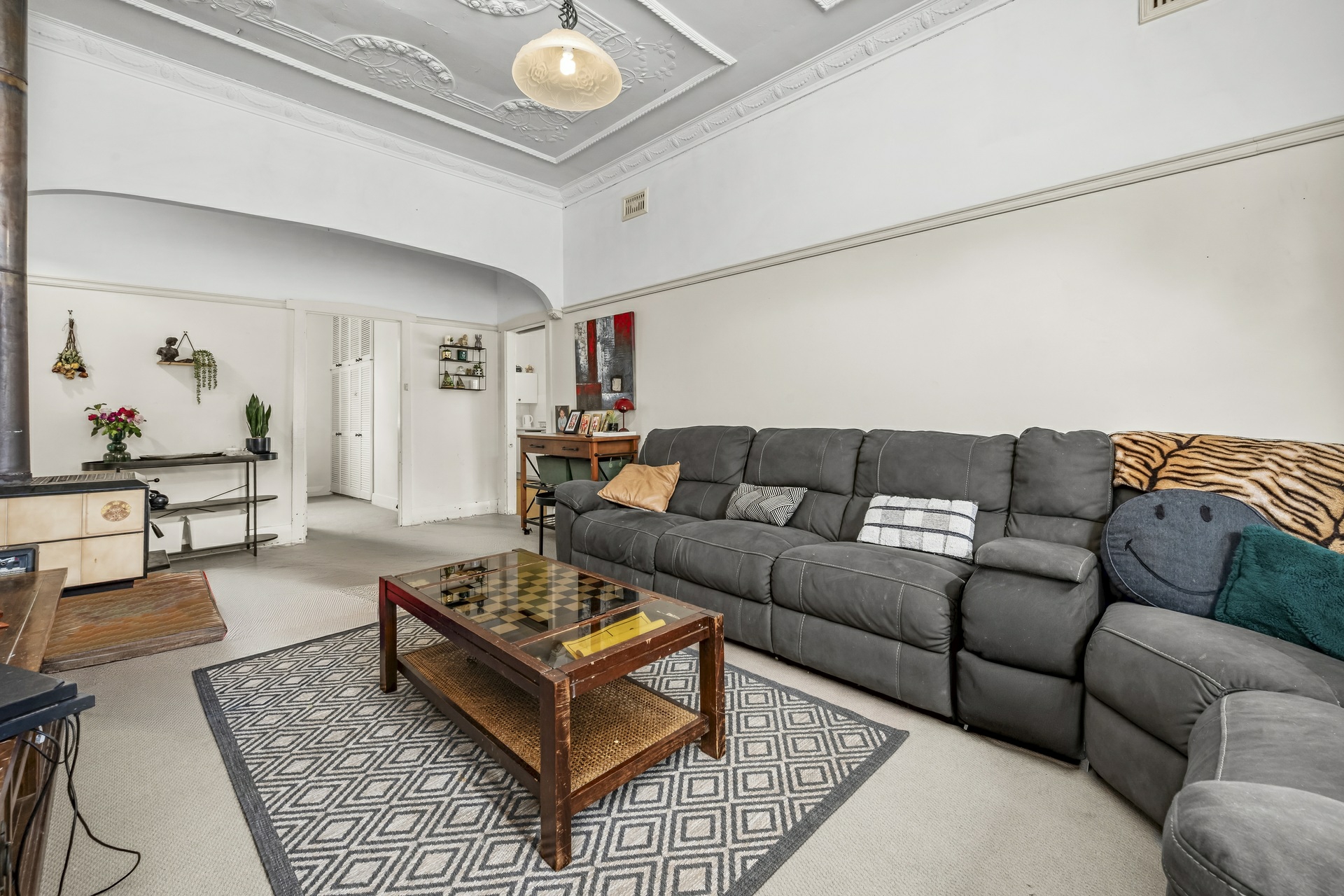 Inside, high ceilings enhance the sense of space across three generous bedrooms, while the huge lounge room impresses with ornate ceiling detail and a combustion fireplace � the perfect centrepiece for relaxed family living. The large laminate kitchen offers ample cupboard and bench space, seamlessly connecting to the adjoining meals area and flowing out to the rear deck.