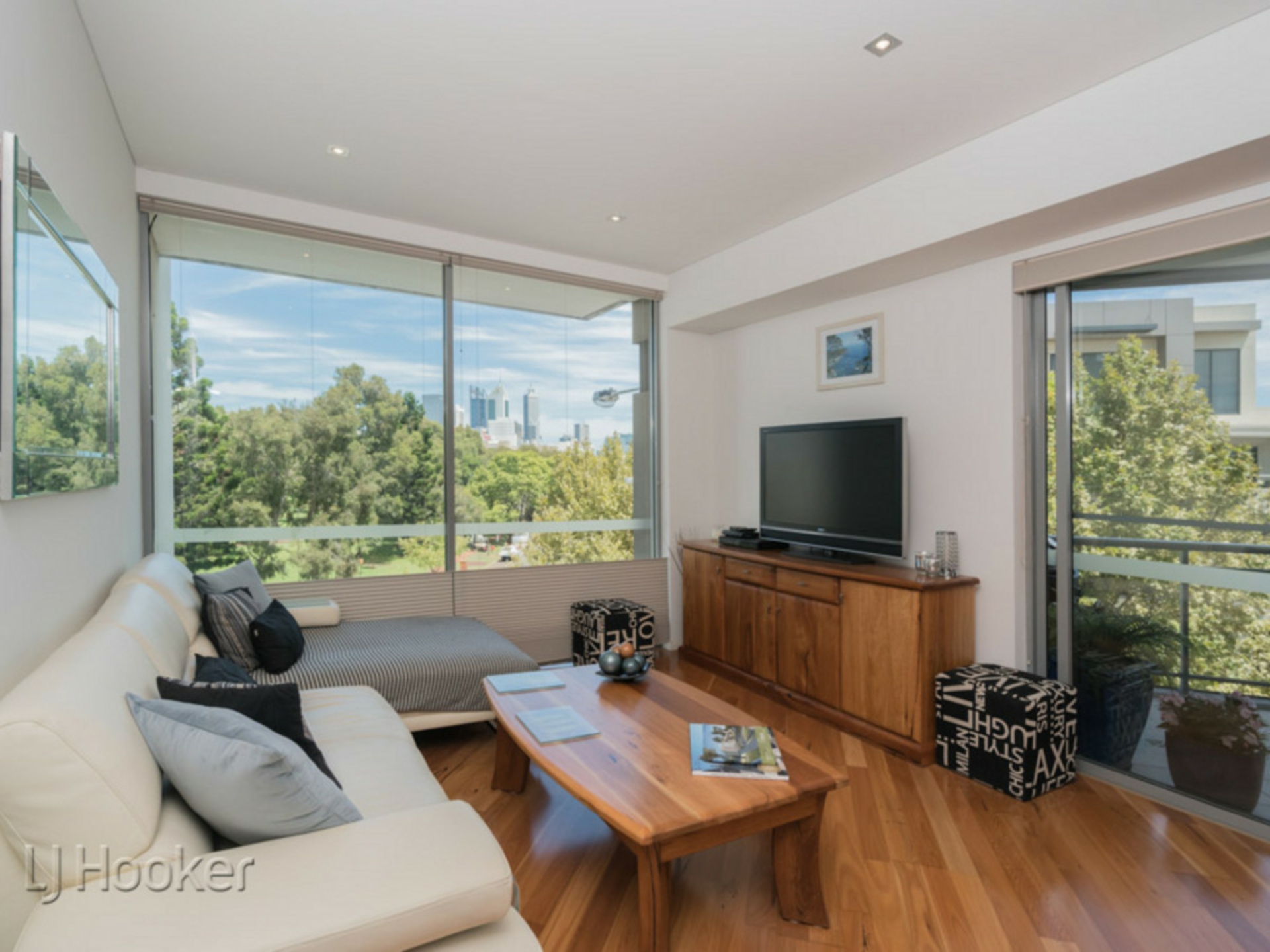 - Park and city views from living room picture window