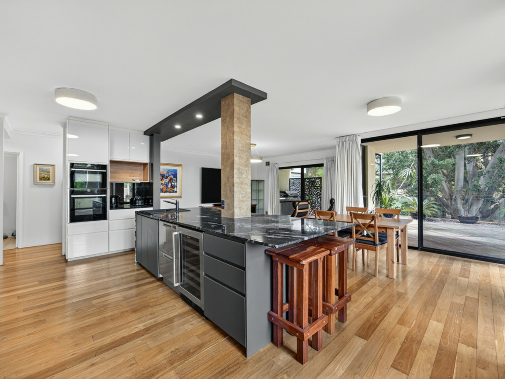 The light-filled open-plan living and dining area creates an inviting central hub and flows into a well-designed and stylishly updated kitchen that maximises practicality and function. With stunning stone benches, sleek cabinetry and quality appliances, this kitchen is perfect for a home shef and an entertainer's delight.